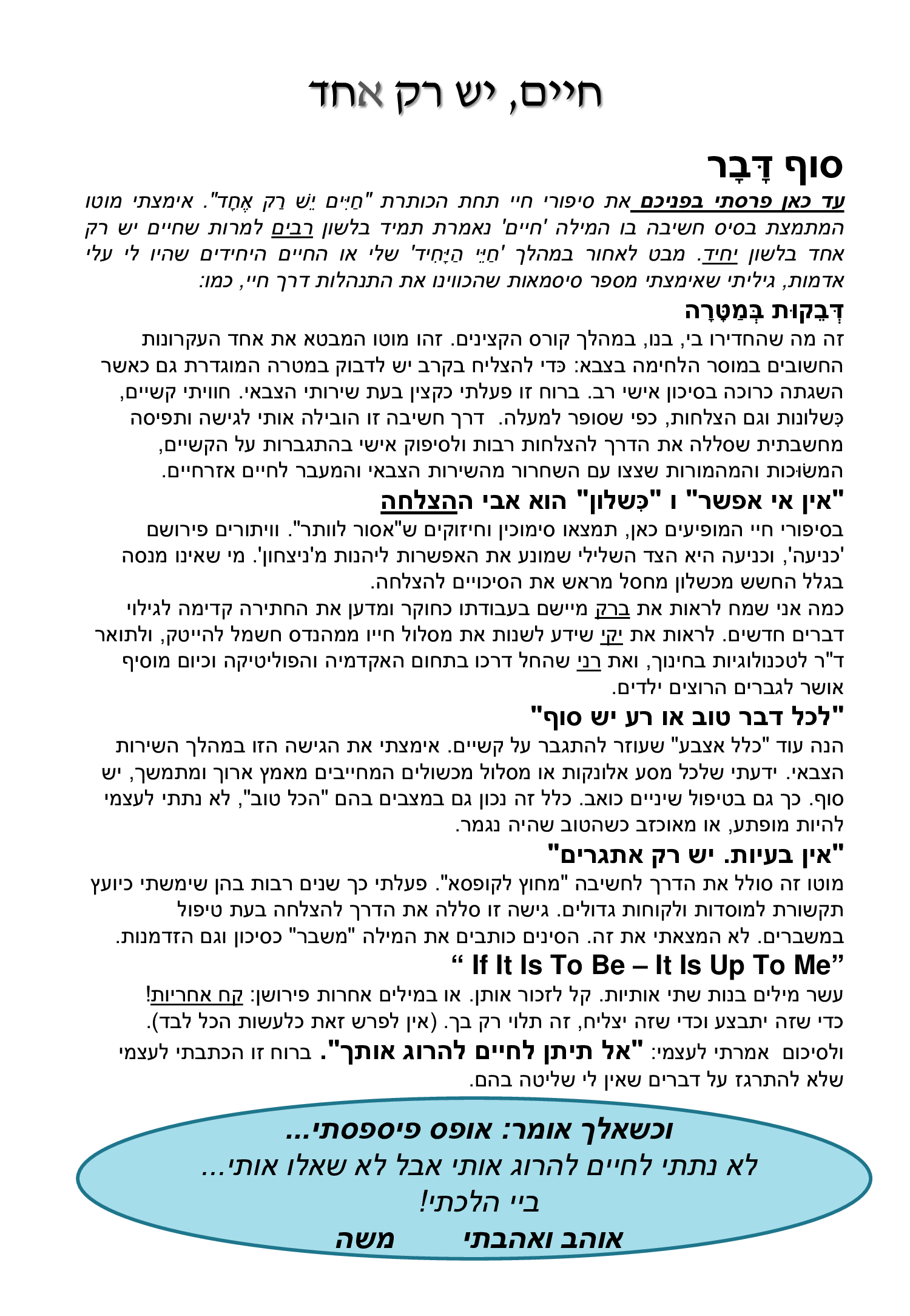 חיים יש רק אחד | משה דיין