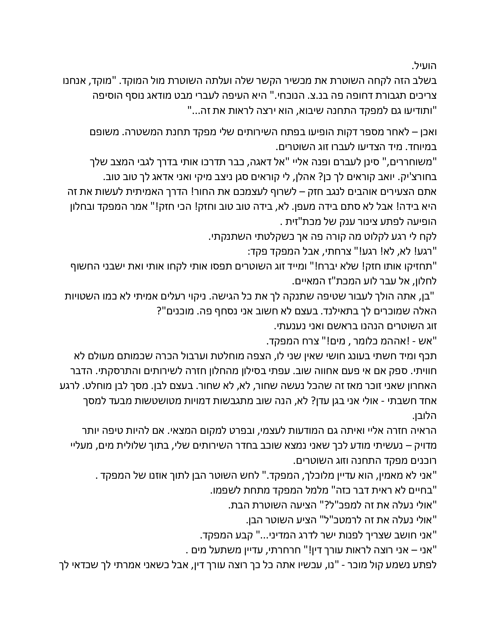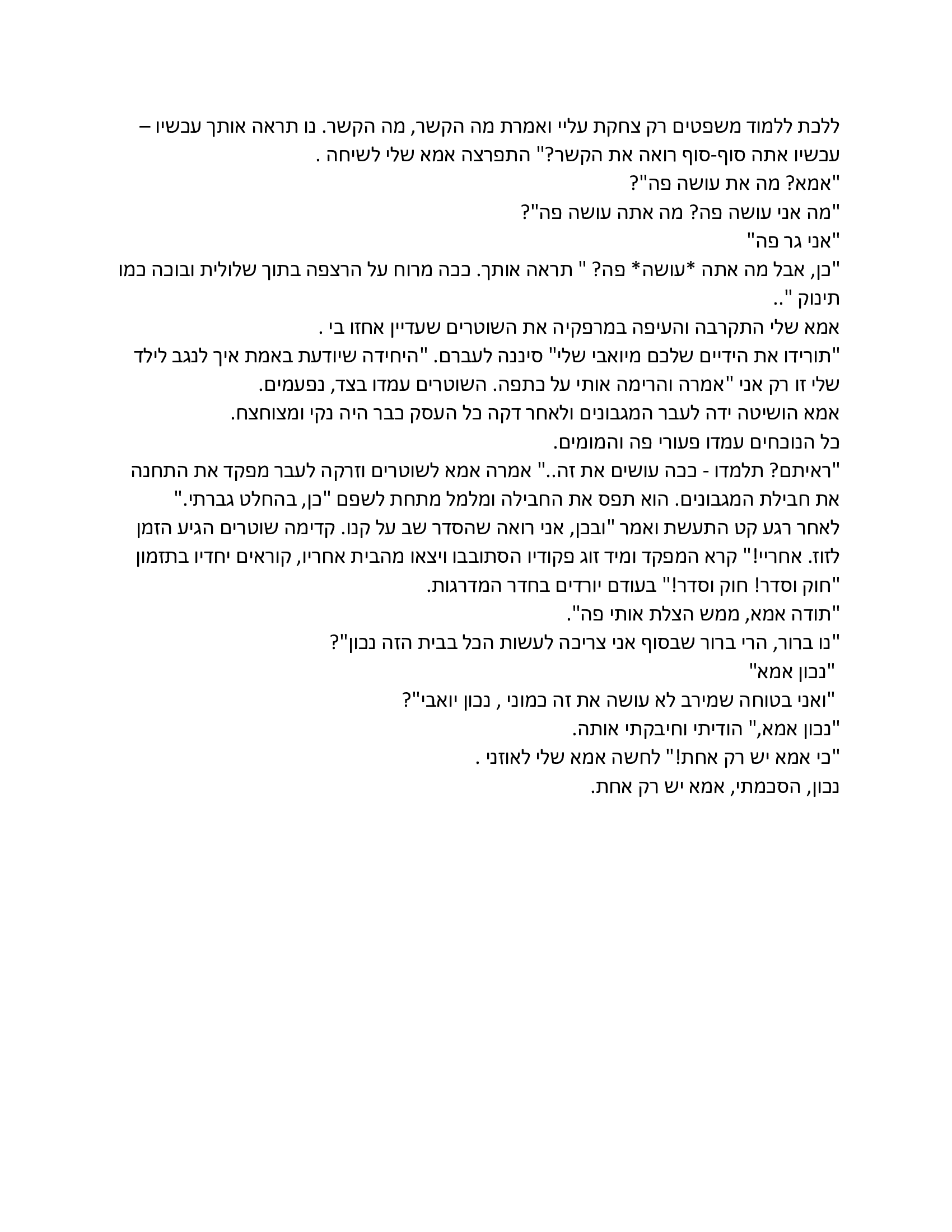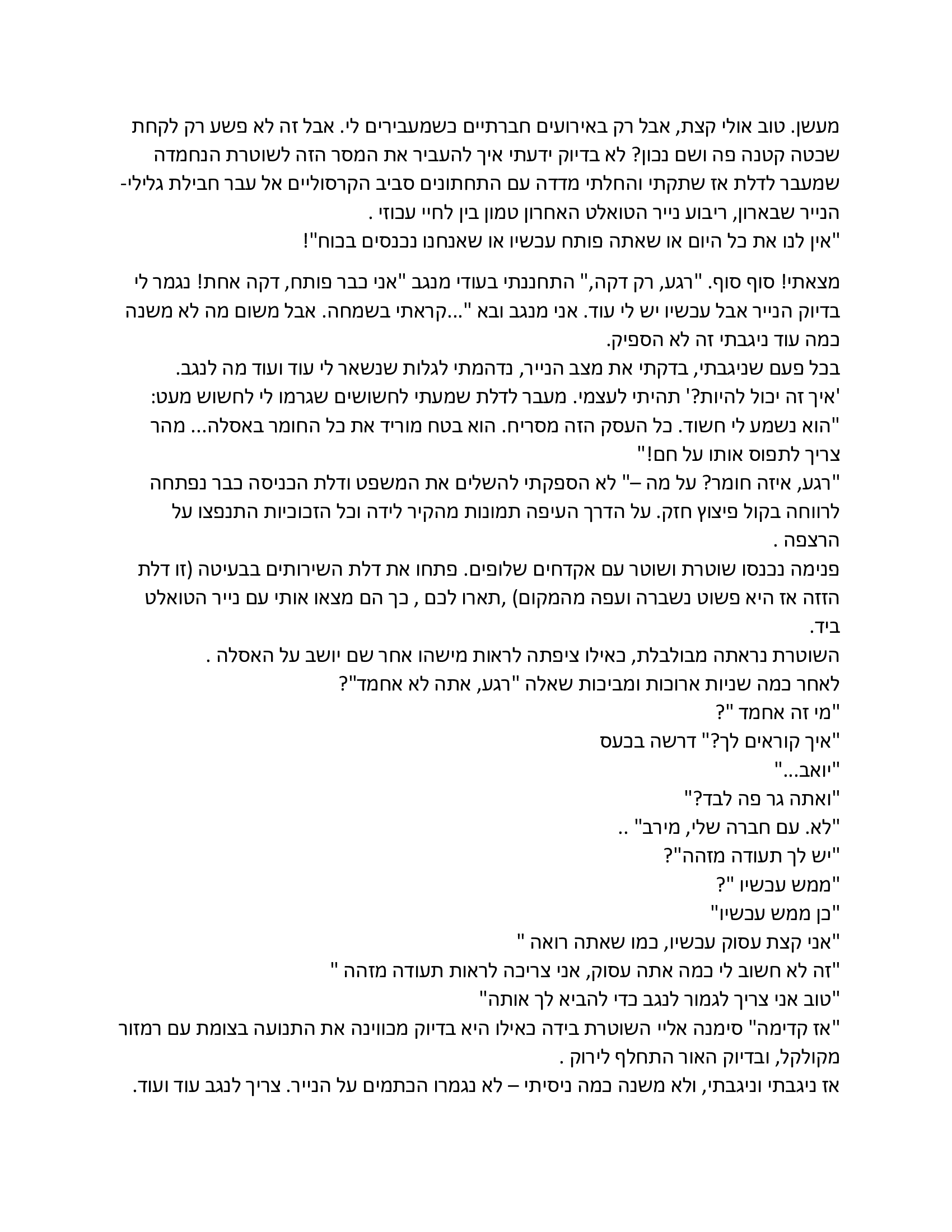 באפשרותך לכתוב כאן את תגובתך ליצירה שקראת. נא לשמור על שפה נאותה ומכובדת כדי שהנהלת האתר תאשר את פרסום תגובתך. כמו-כן ניתן לדרג את הנאתך מקריאת היצירה בין 1-5 כוכבים.