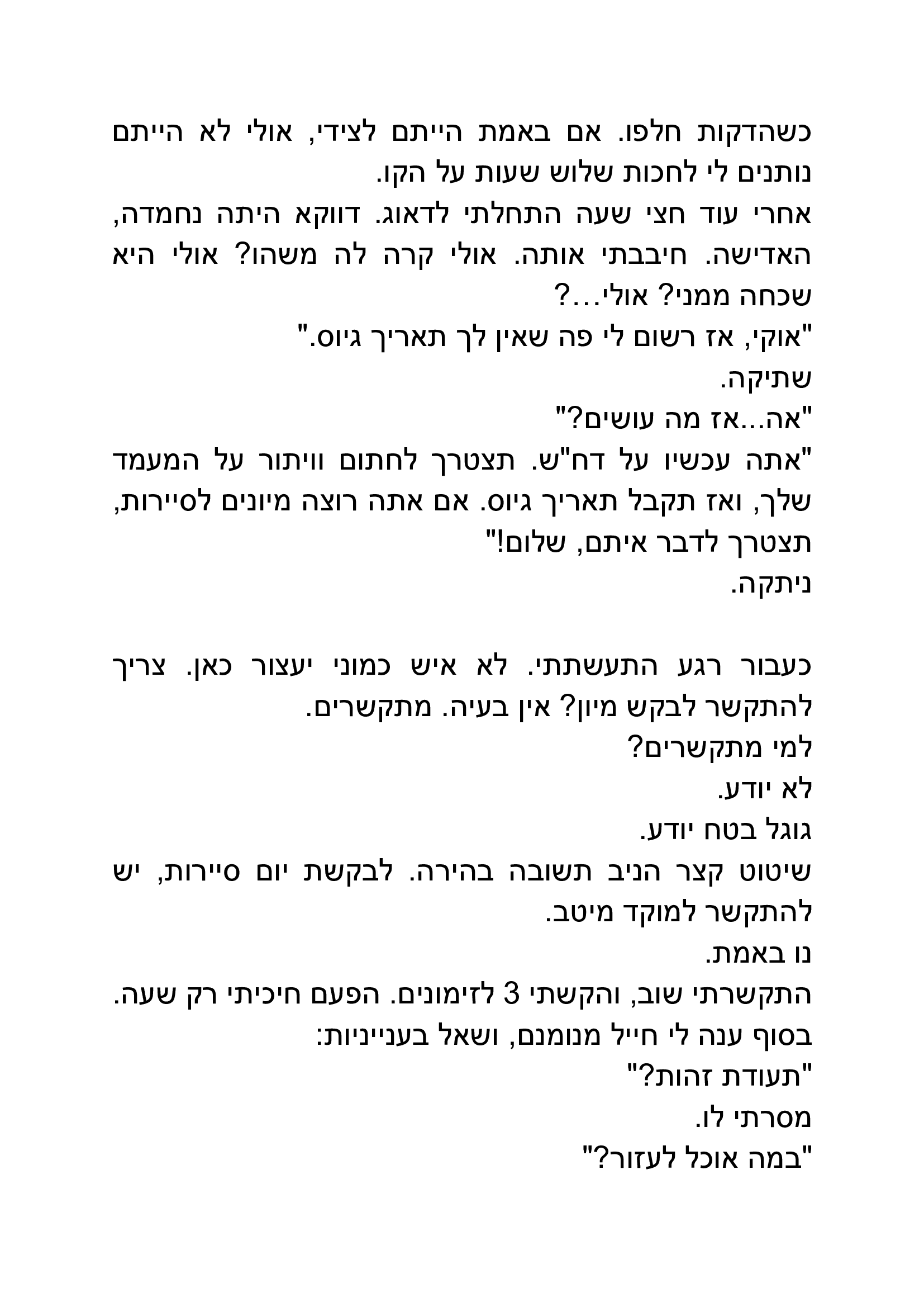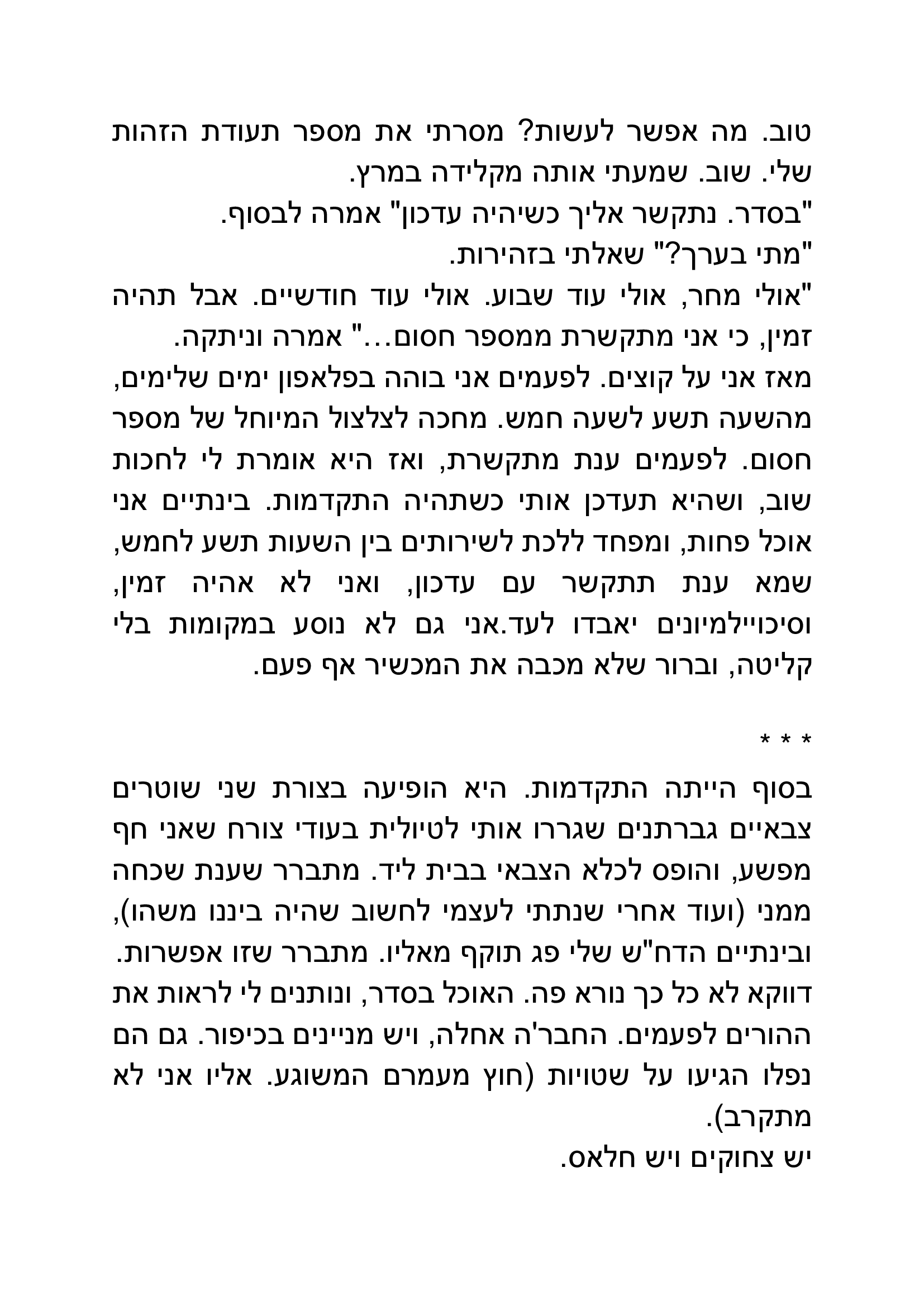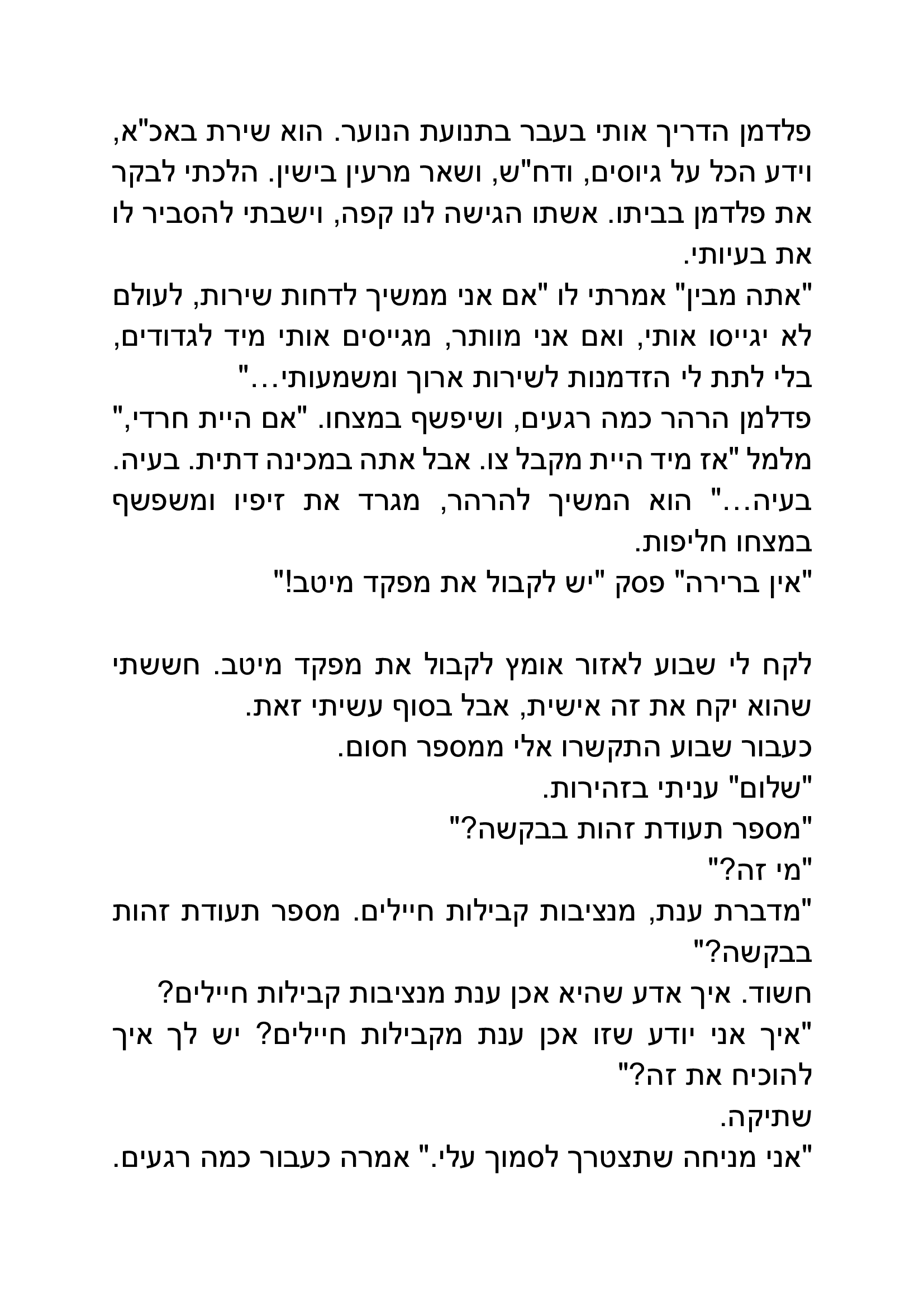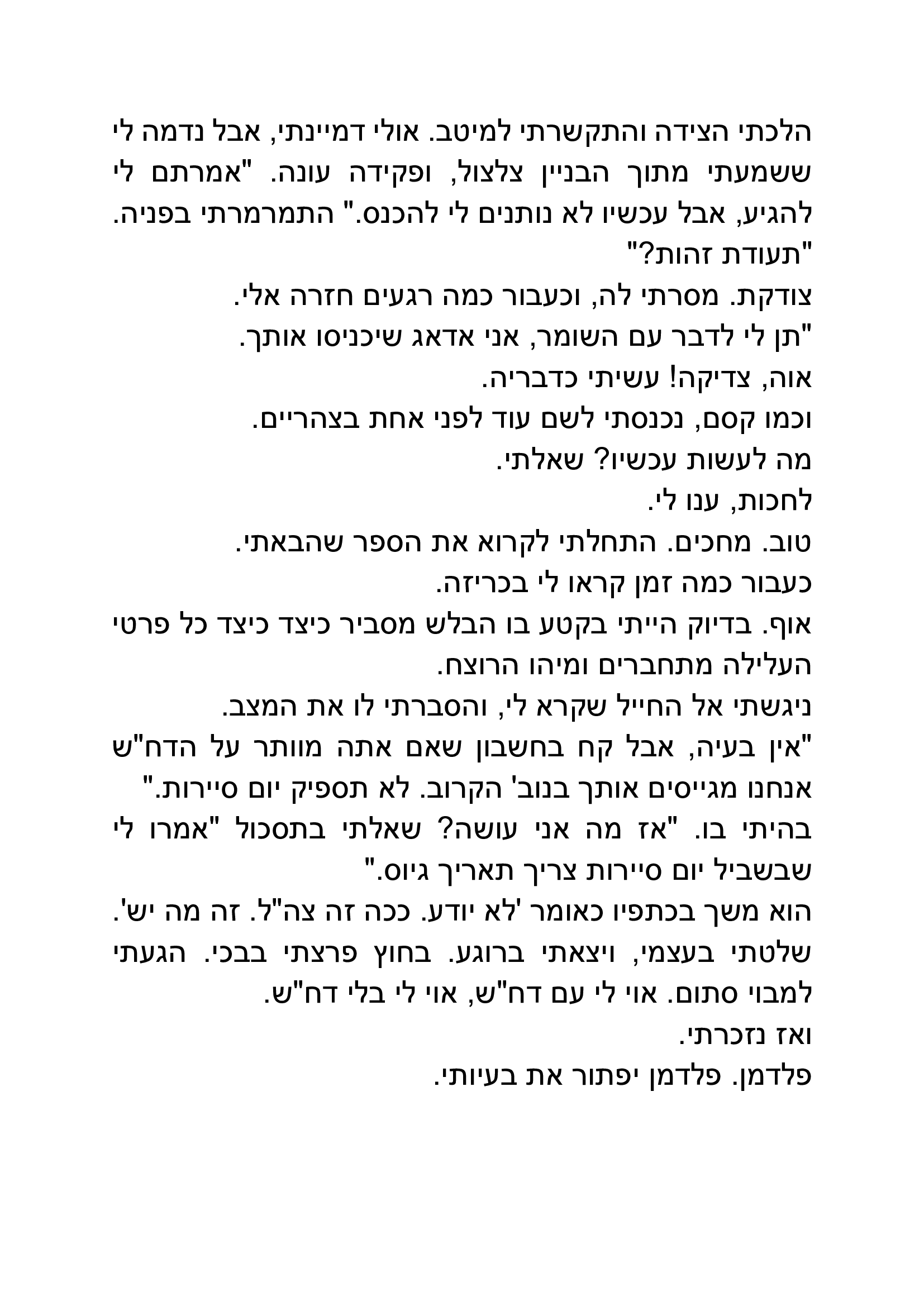 חביב מאוד, ריאליסטי וקומי, מדכא ומשעשע בו בעת, ניתן להכיר גם כן באופי הנעול והתמים של הגיבור, שמעצים את חוויית התסכול של הקורא וגם מייצר את ההזדהות, ניכר שהכותב כיוון לפרסונה מסויימת ואף צלח את הדרך.