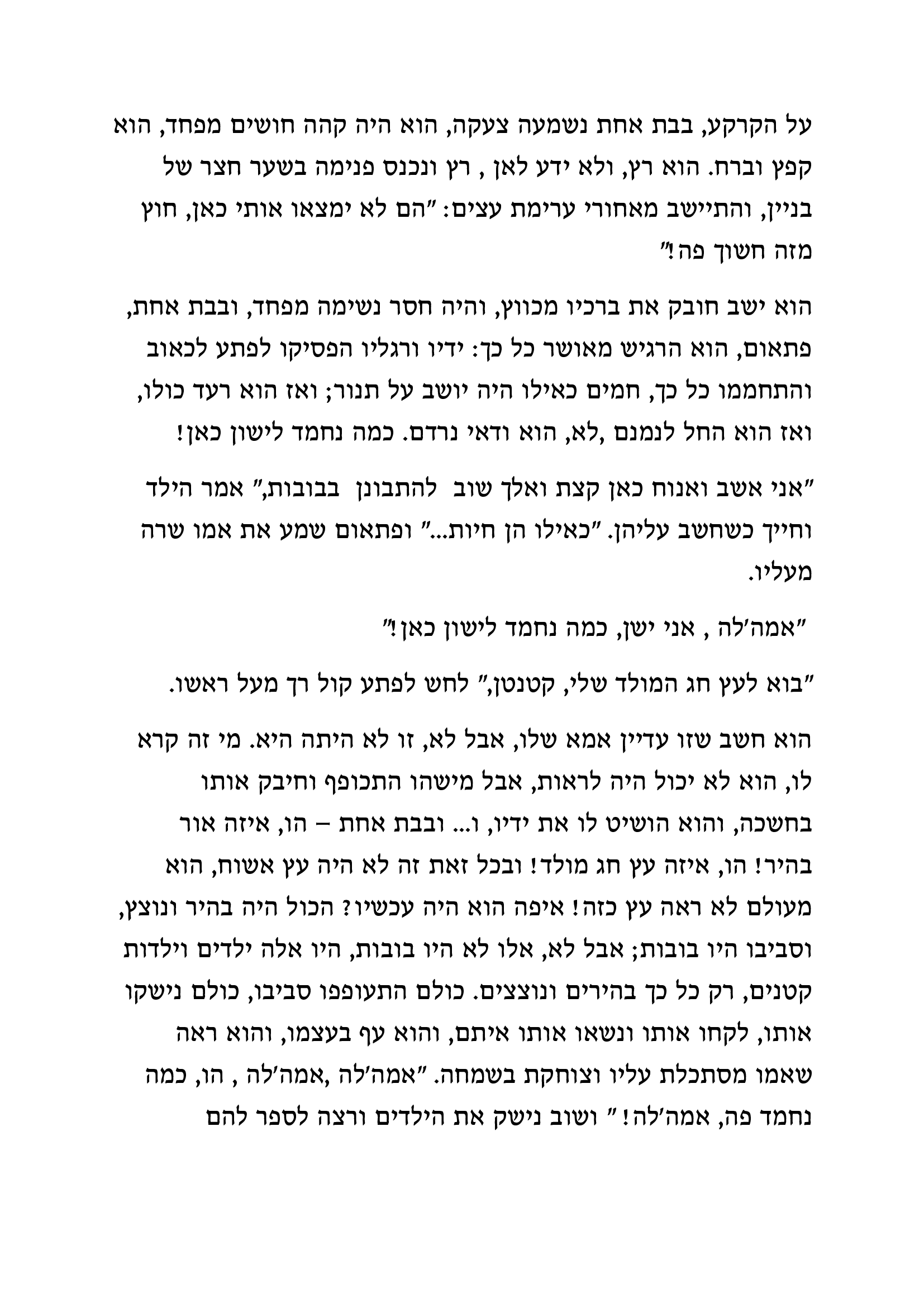 באפשרותך לכתוב כאן את תגובתך ליצירה שקראת. נא לשמור על שפה נאותה ומכובדת כדי שהנהלת האתר תאשר את פרסום תגובתך. כמו-כן ניתן לדרג את הנאתך מקריאת היצירה בין 1-5 כוכבים.