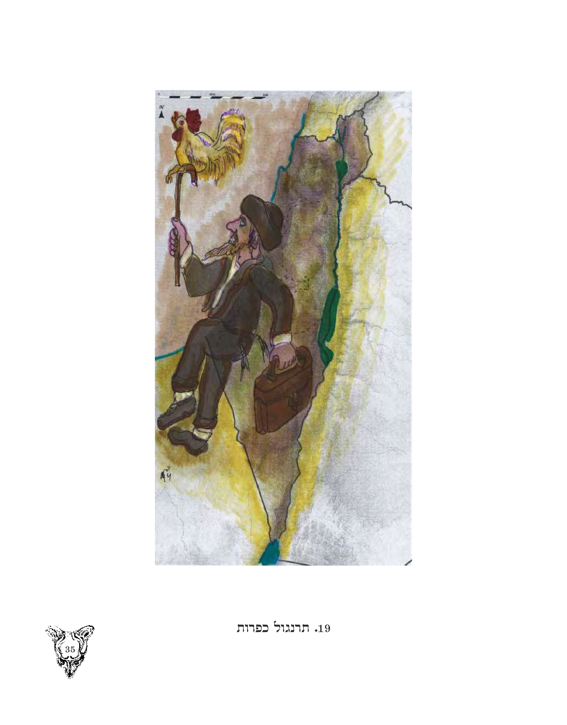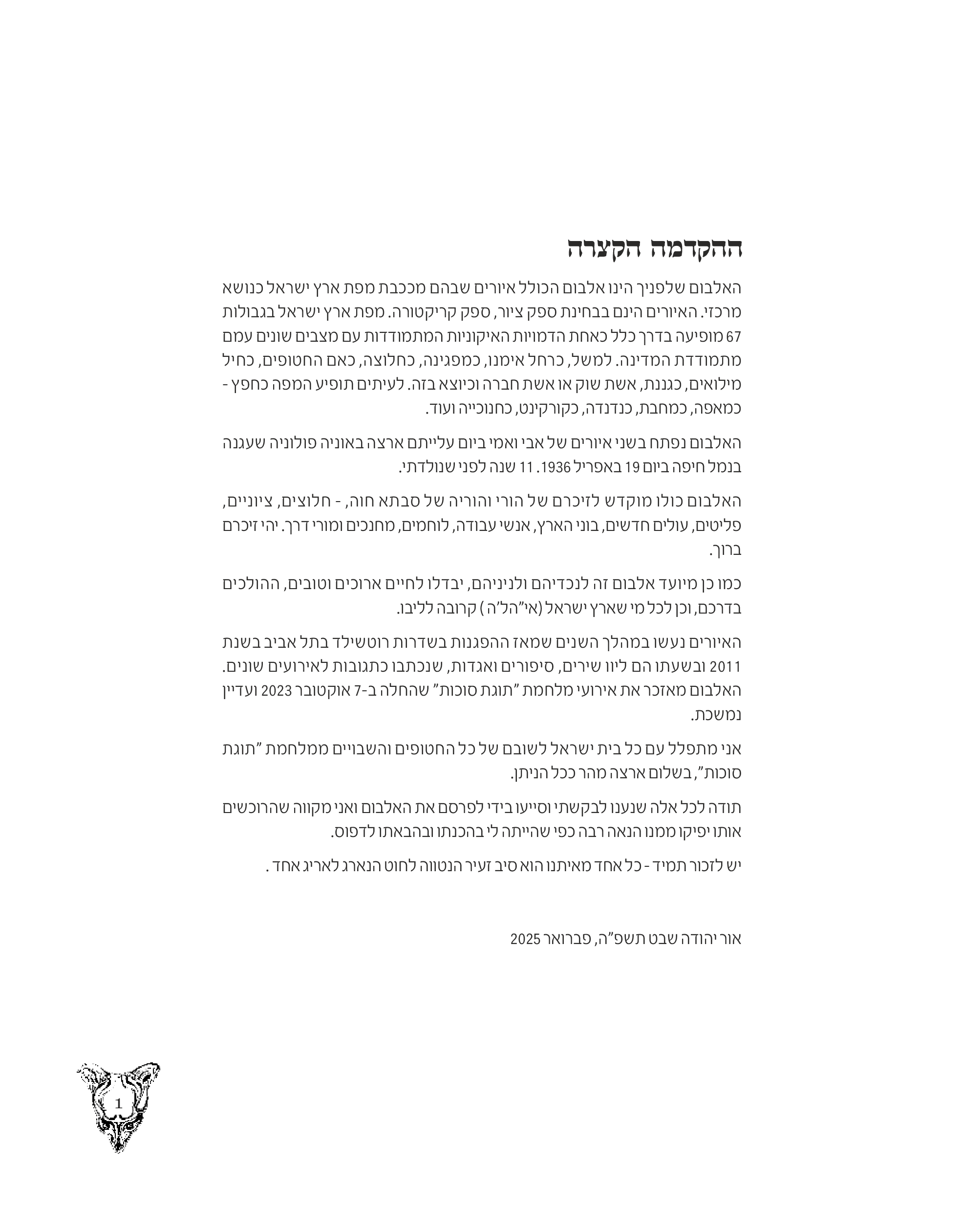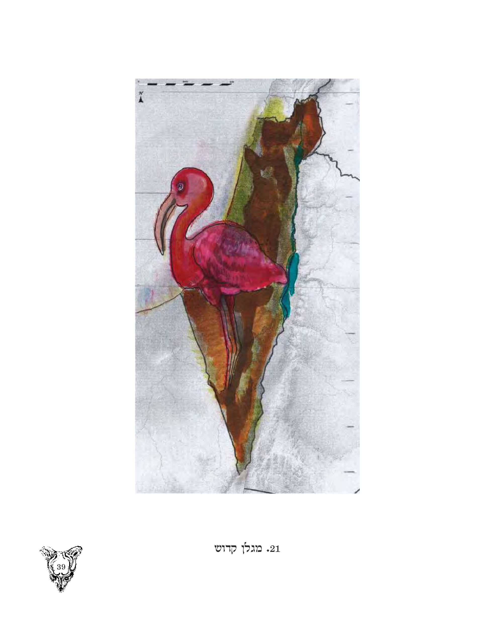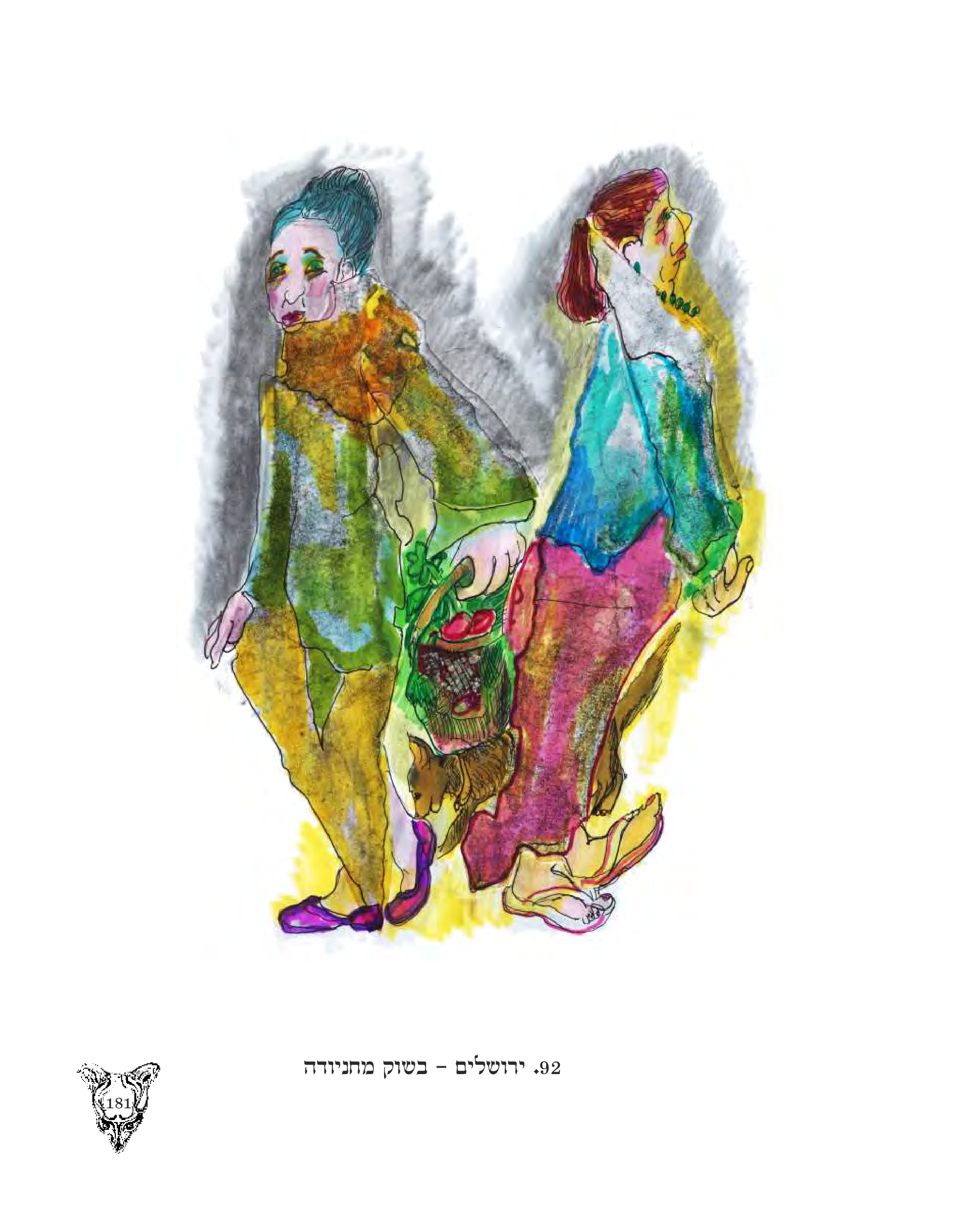 אחר כך המפגש עם ההקדמה המבהירה את הפרופורציות האחרות – ארץ ישראל שלך בגבולות 1967 מציגה מציאות רבודה של הומור וכאב, שעשוע ורצינות, התחכמות ומסר ישיר. ואז פגשתי בשמות ההורים, וחייכתי למראה שמות האבות שלכם – ייתכן ששניהם הגיעו מאותה התפוצה, אך בעוד שמו של האחד נותר נטוע שם – בעבוס, האחר עם שם מפתיע אפילו למי שהעתיק שורשיו לארץ חדשה – אושר. ואז פגשתי את דמויות הוריך – אם גדולה שעיניה מכוסות, כף ידה גדולה, יד ענקים (שמה לאל?) ואב זעיר טומן ידיו בכיסים ומבטו מוסט (לאן?). ציור שעשה עליי רושם מיוחד הו