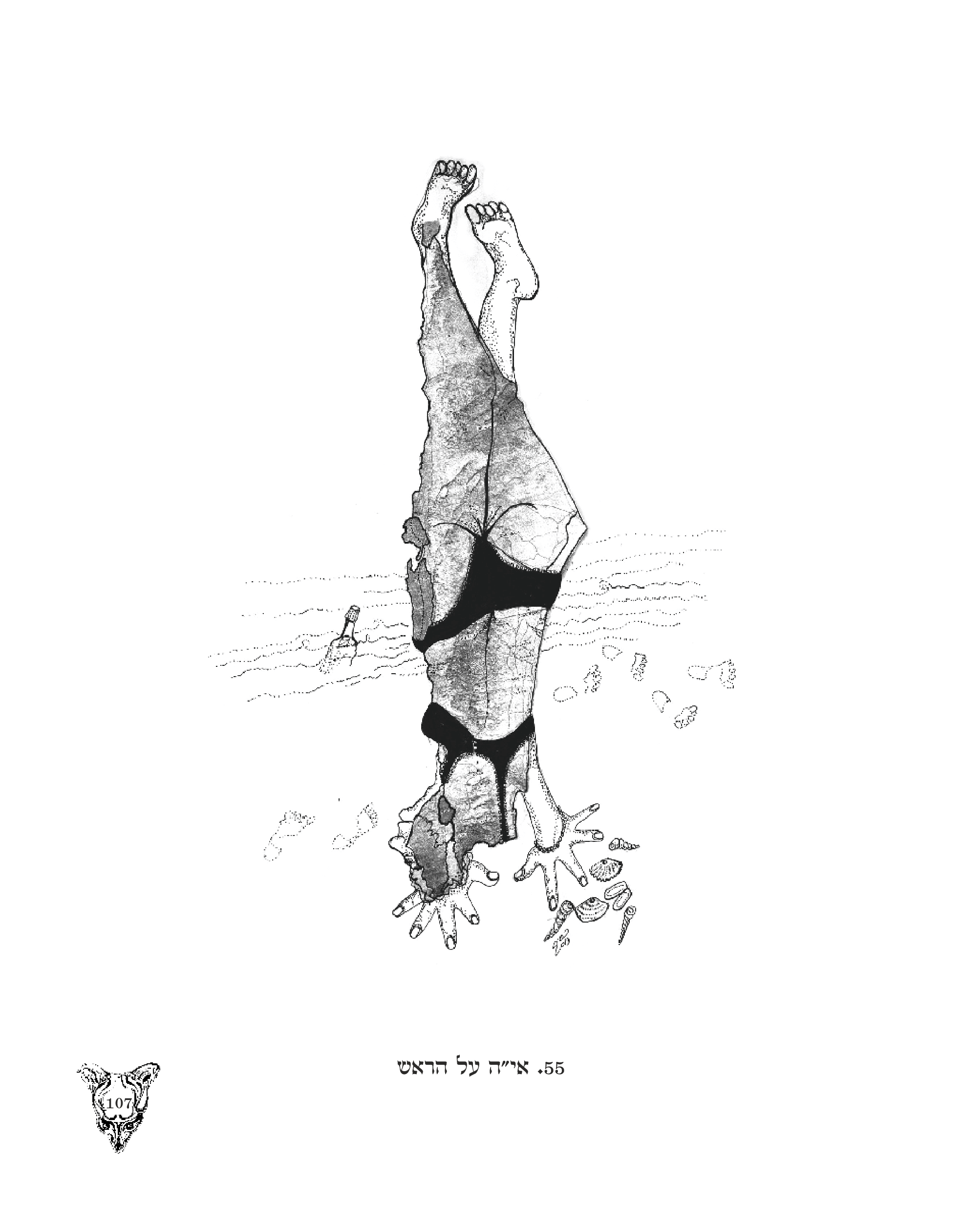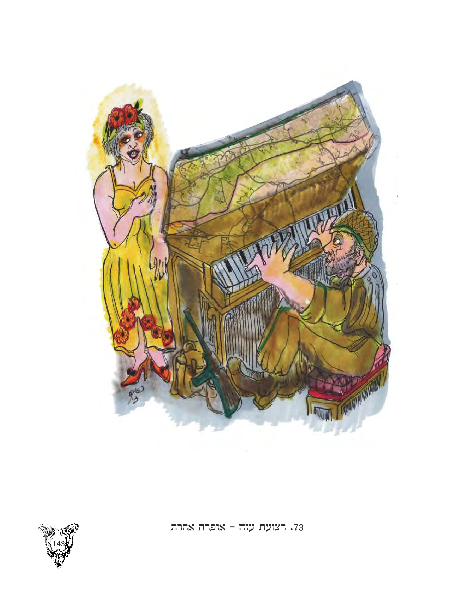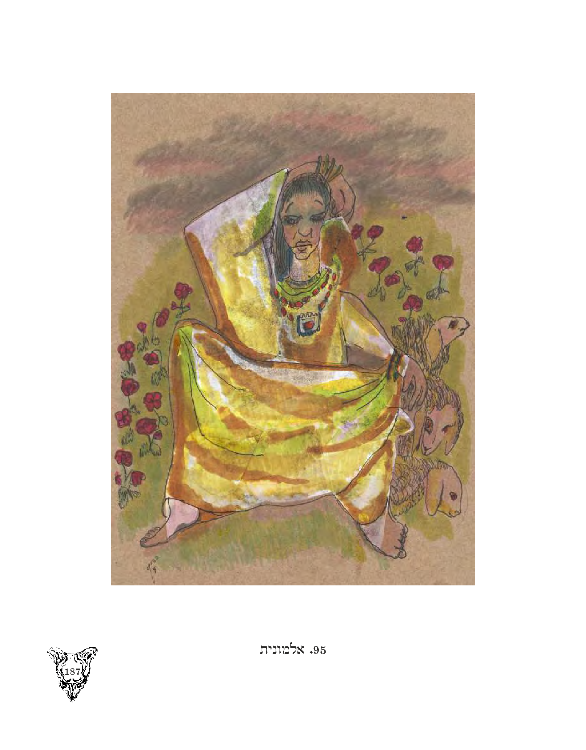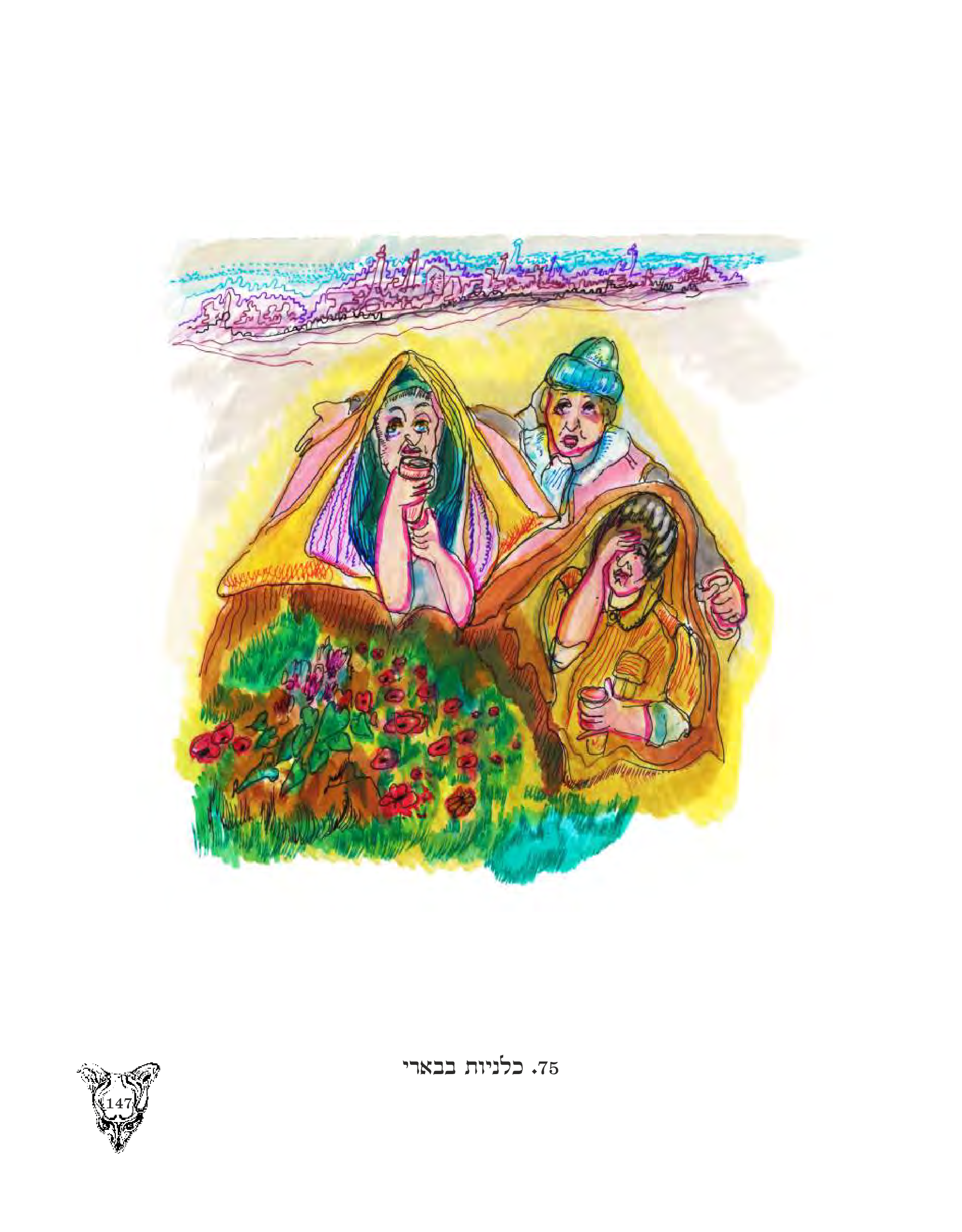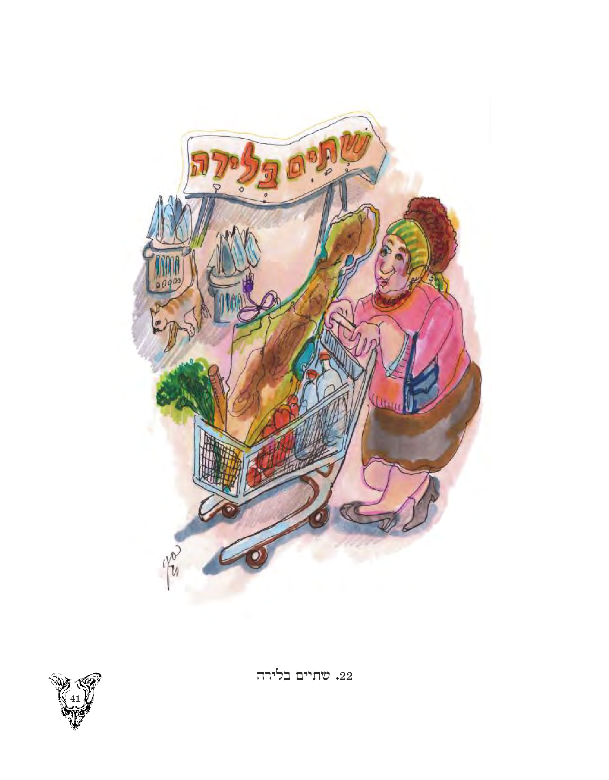 אחר כך המפגש עם ההקדמה המבהירה את הפרופורציות האחרות – ארץ ישראל שלך בגבולות 1967 מציגה מציאות רבודה של הומור וכאב, שעשוע ורצינות, התחכמות ומסר ישיר. ואז פגשתי בשמות ההורים, וחייכתי למראה שמות האבות שלכם – ייתכן ששניהם הגיעו מאותה התפוצה, אך בעוד שמו של האחד נותר נטוע שם – בעבוס, האחר עם שם מפתיע אפילו למי שהעתיק שורשיו לארץ חדשה – אושר. ואז פגשתי את דמויות הוריך – אם גדולה שעיניה מכוסות, כף ידה גדולה, יד ענקים (שמה לאל?) ואב זעיר טומן ידיו בכיסים ומבטו מוסט (לאן?). ציור שעשה עליי רושם מיוחד הו