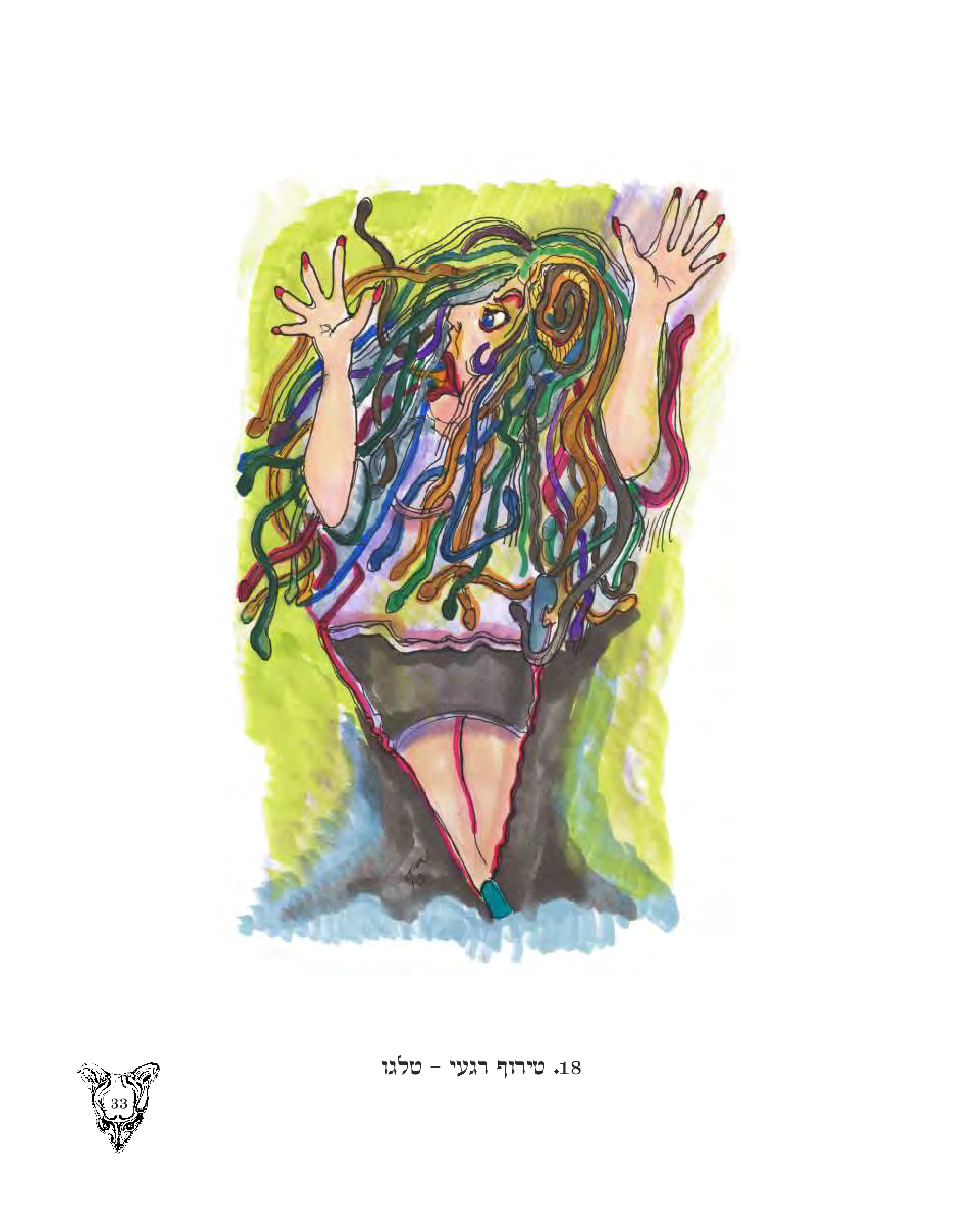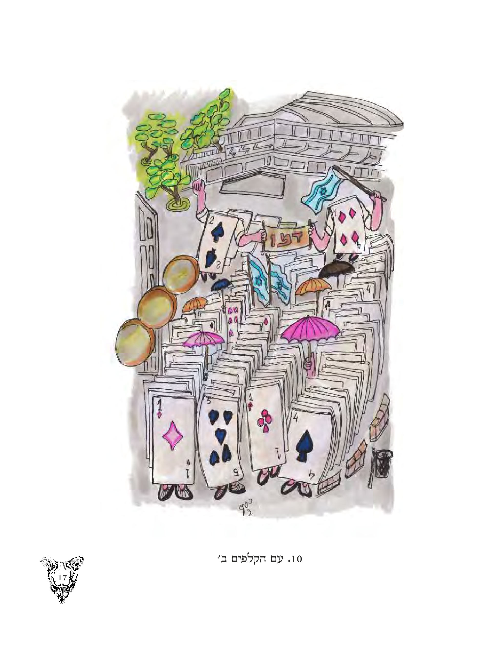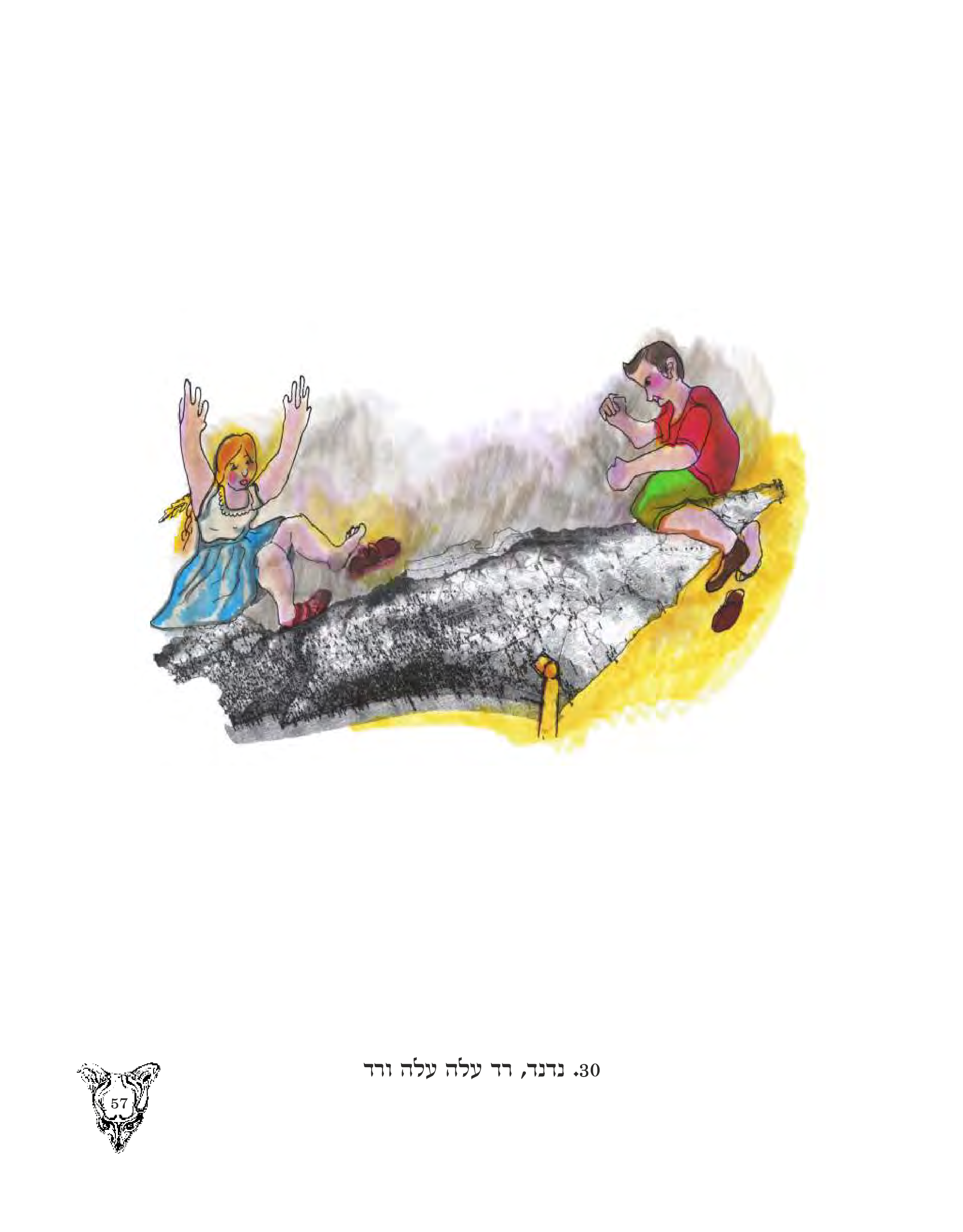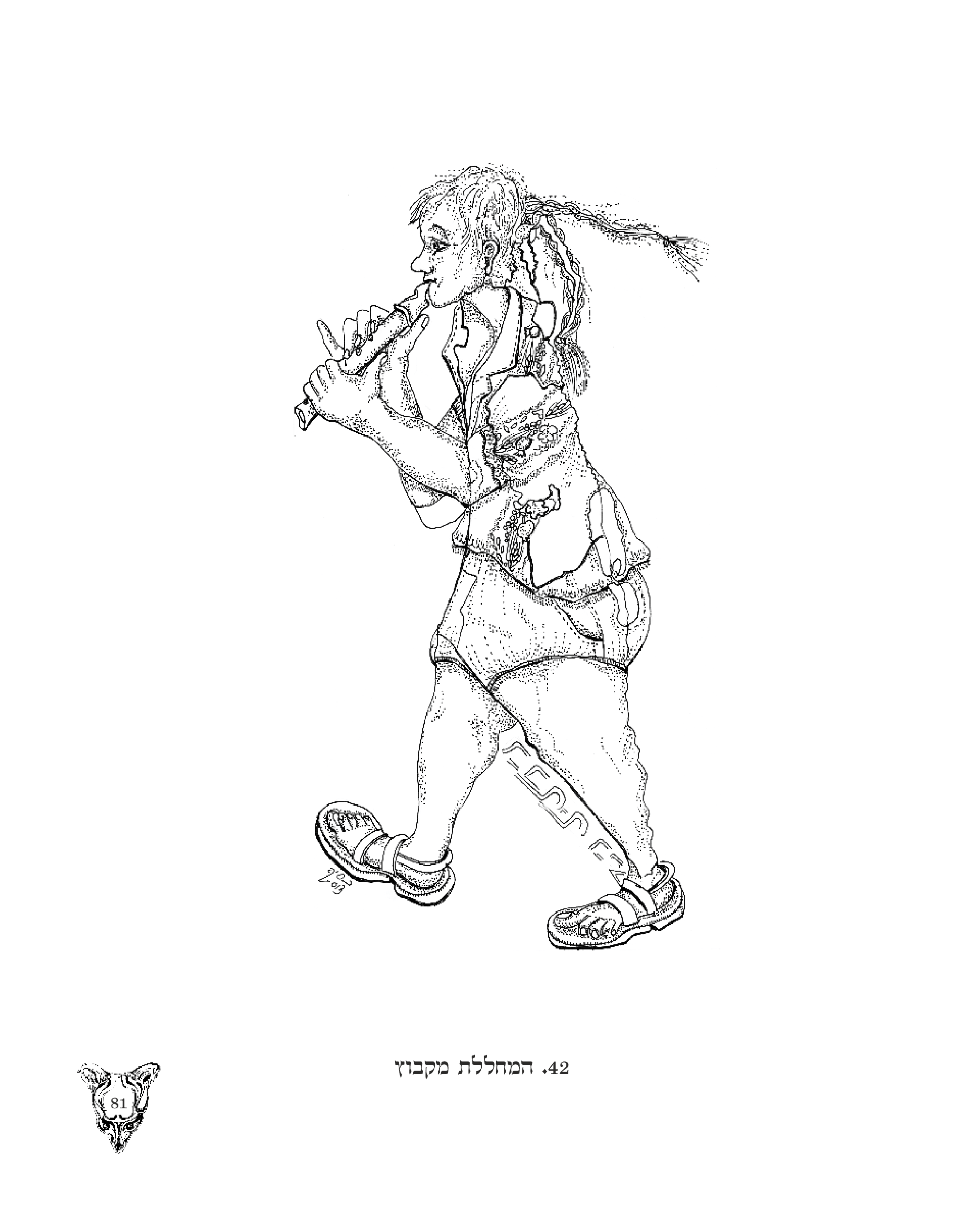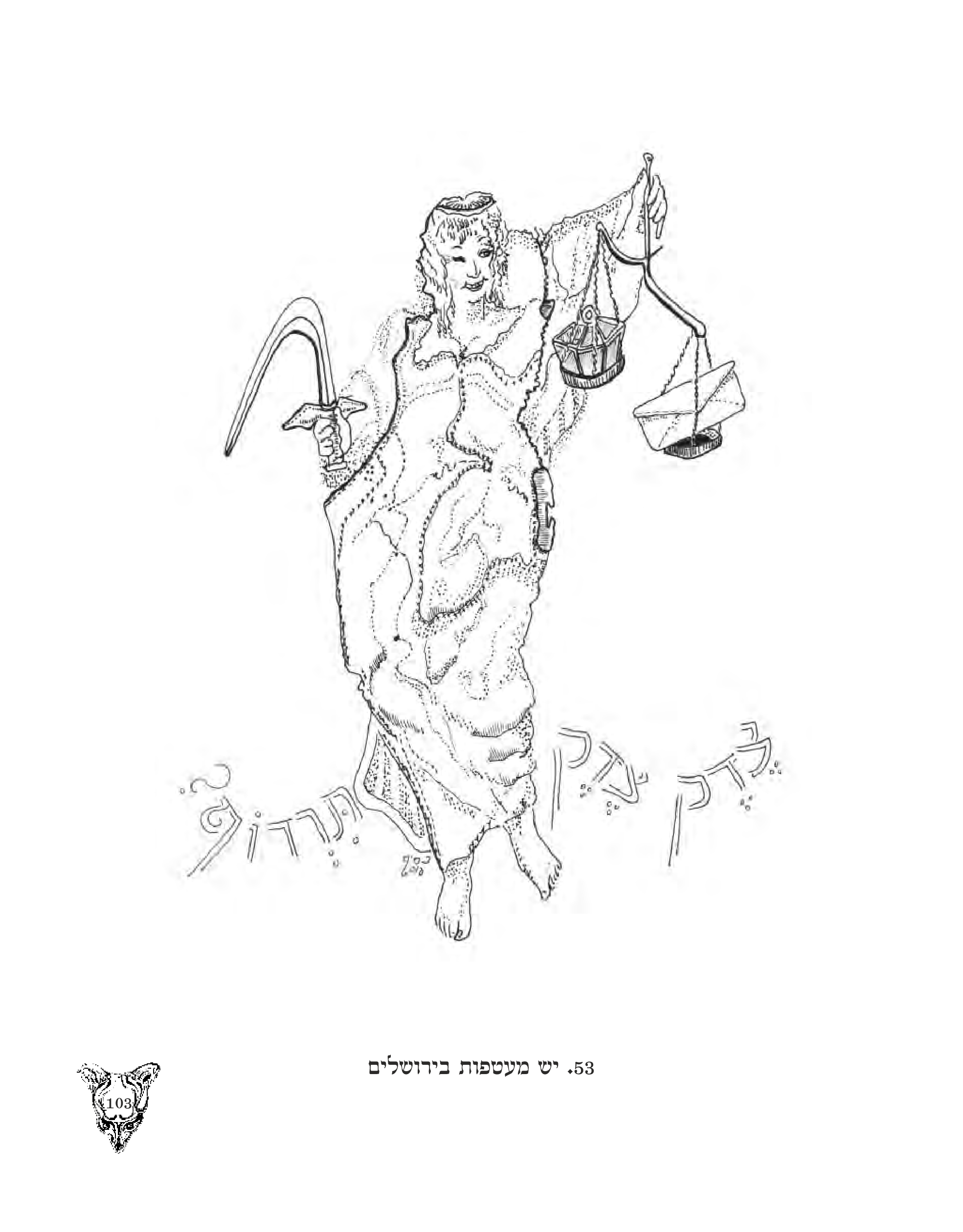 אחר כך המפגש עם ההקדמה המבהירה את הפרופורציות האחרות – ארץ ישראל שלך בגבולות 1967 מציגה מציאות רבודה של הומור וכאב, שעשוע ורצינות, התחכמות ומסר ישיר. ואז פגשתי בשמות ההורים, וחייכתי למראה שמות האבות שלכם – ייתכן ששניהם הגיעו מאותה התפוצה, אך בעוד שמו של האחד נותר נטוע שם – בעבוס, האחר עם שם מפתיע אפילו למי שהעתיק שורשיו לארץ חדשה – אושר. ואז פגשתי את דמויות הוריך – אם גדולה שעיניה מכוסות, כף ידה גדולה, יד ענקים (שמה לאל?) ואב זעיר טומן ידיו בכיסים ומבטו מוסט (לאן?). ציור שעשה עליי רושם מיוחד הו