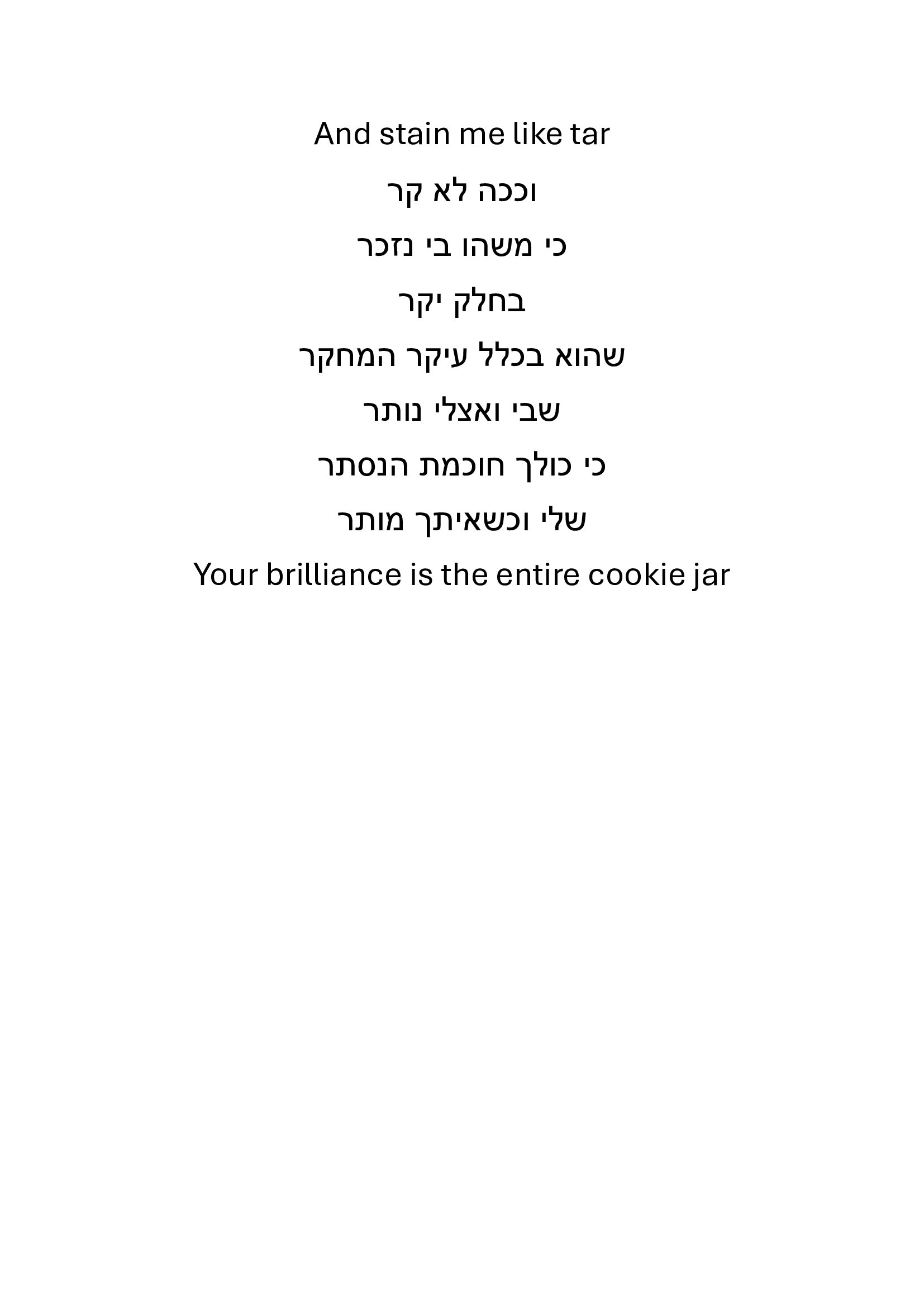 באפשרותך לכתוב כאן את תגובתך ליצירה שקראת. נא לשמור על שפה נאותה ומכובדת כדי שהנהלת האתר תאשר את פרסום תגובתך. כמו-כן ניתן לדרג את הנאתך מקריאת היצירה בין 1-5 כוכבים.