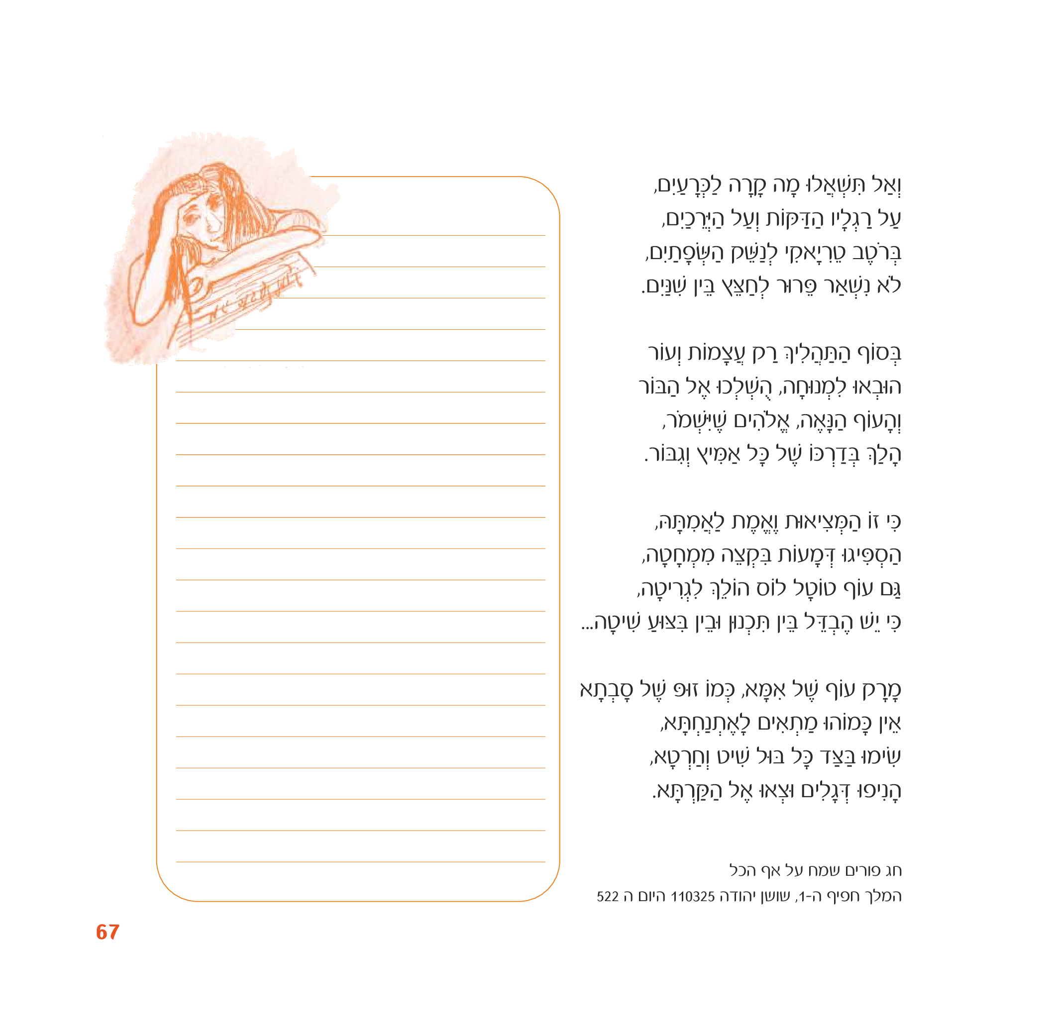 גרירת איקון "הארת" שוליים לשורה/פסקה מסוימת מאפשרת להאיר את הנכתב בתצורה מתומצתת וקצרה. תוכן זה יפורסם לאחר אישור הנהלת האתר ובהסכמת מחבר/ת היצירה.