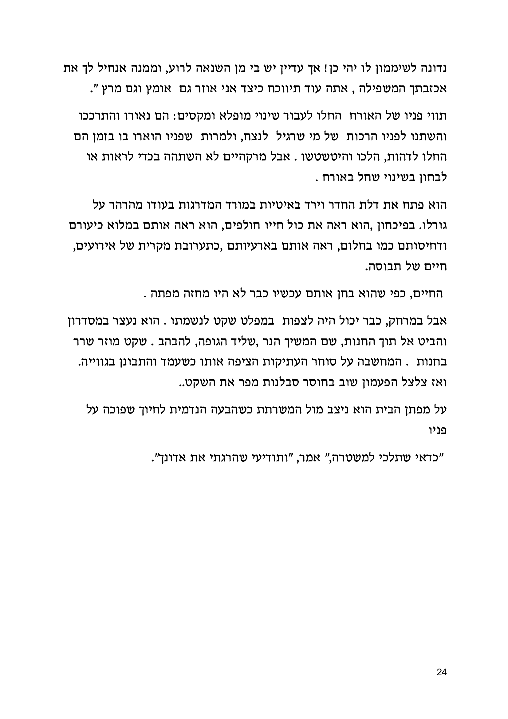 באפשרותך לכתוב כאן את תגובתך ליצירה שקראת. נא לשמור על שפה נאותה ומכובדת כדי שהנהלת האתר תאשר את פרסום תגובתך. כמו-כן ניתן לדרג את הנאתך מקריאת היצירה בין 1-5 כוכבים.