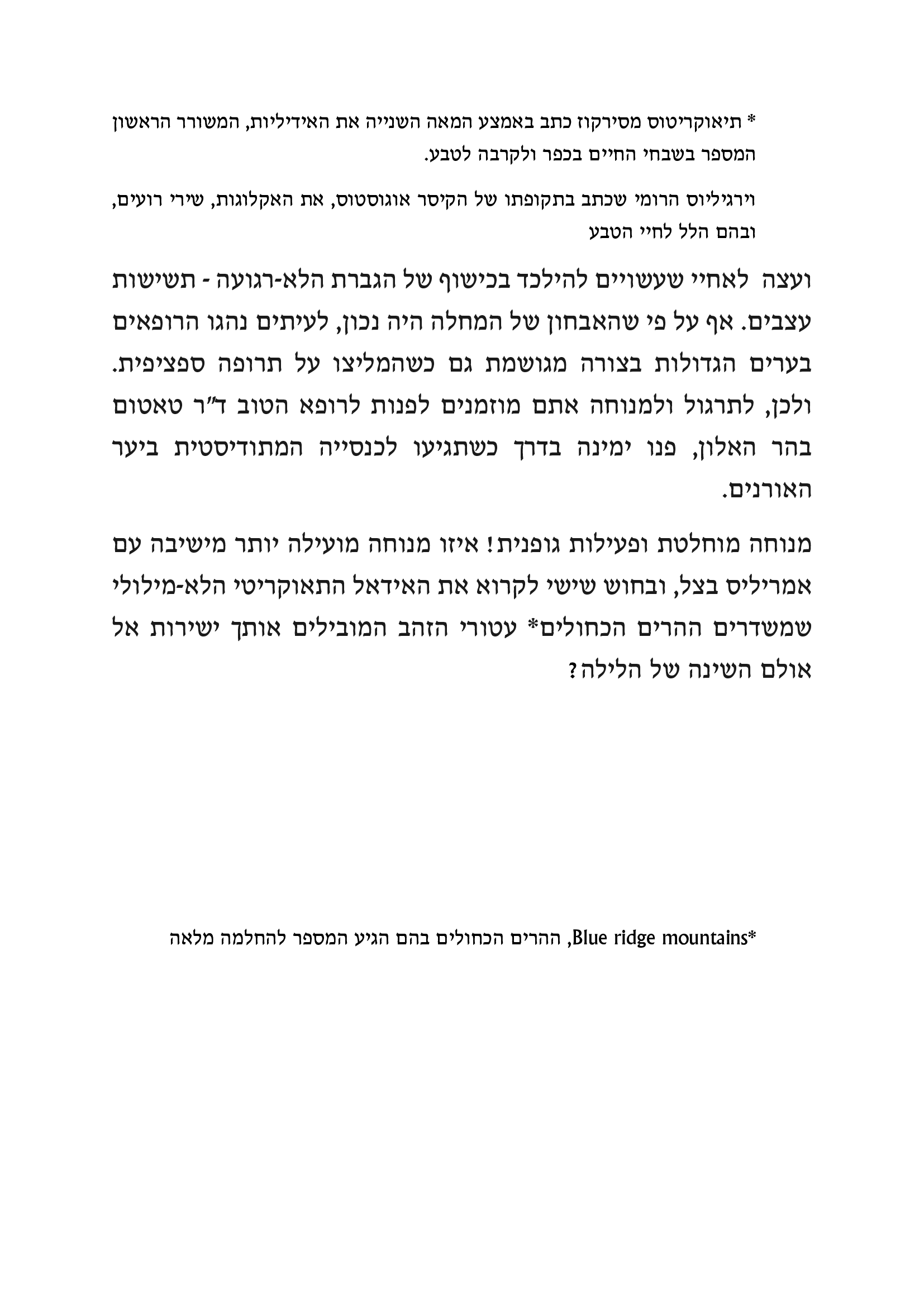 באפשרותך לכתוב כאן את תגובתך ליצירה שקראת. נא לשמור על שפה נאותה ומכובדת כדי שהנהלת האתר תאשר את פרסום תגובתך. כמו-כן ניתן לדרג את הנאתך מקריאת היצירה בין 1-5 כוכבים.