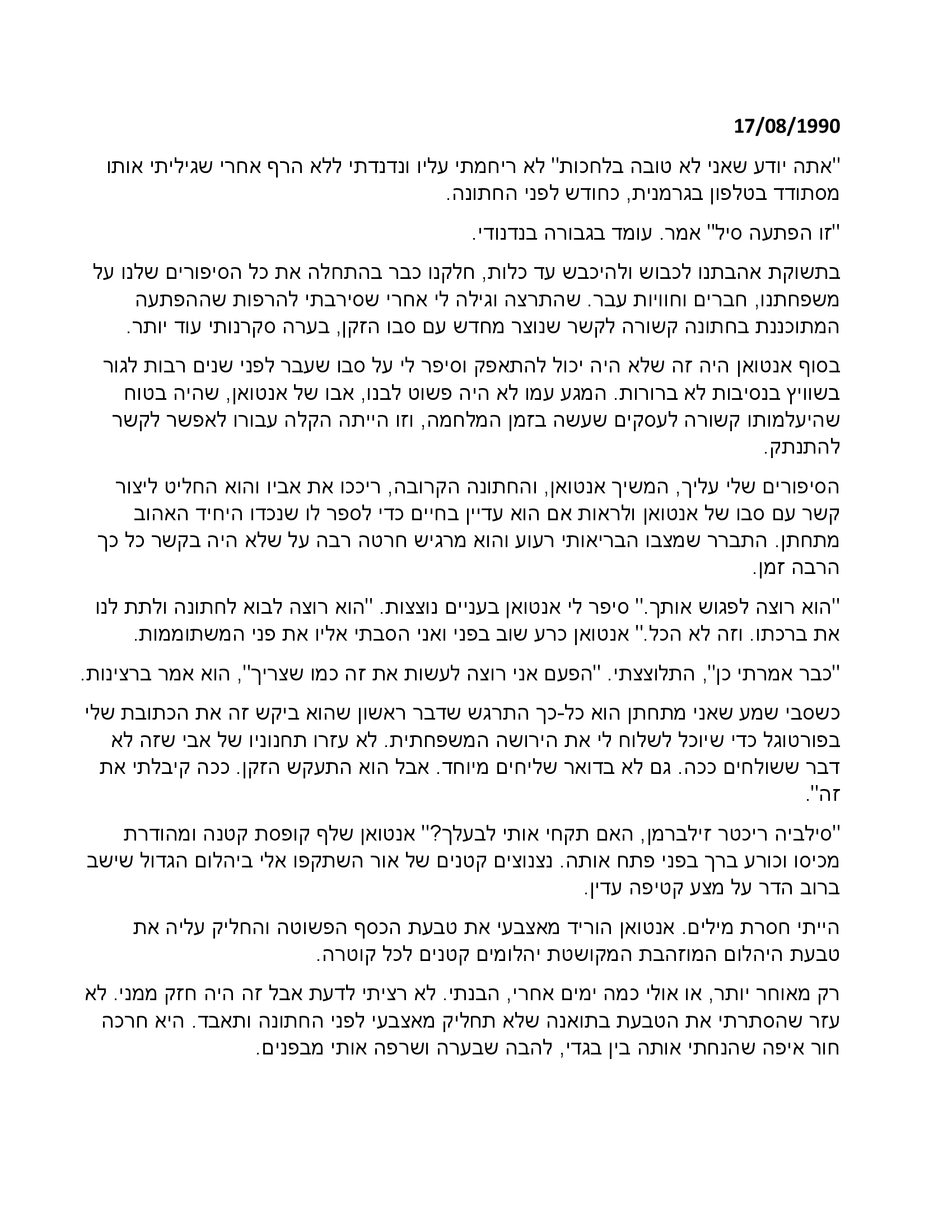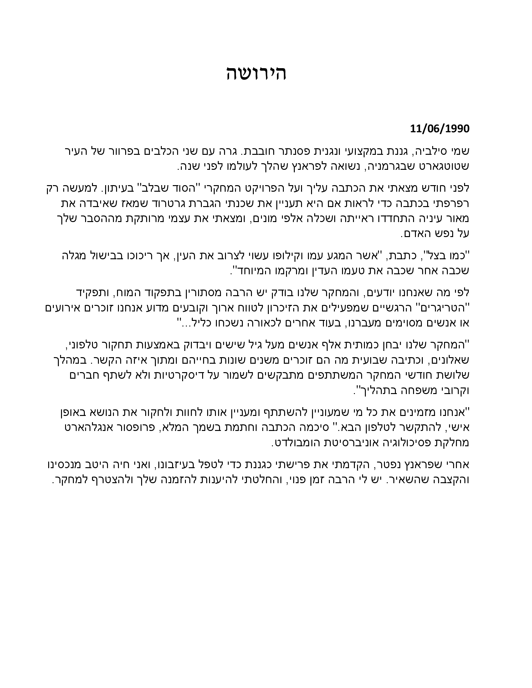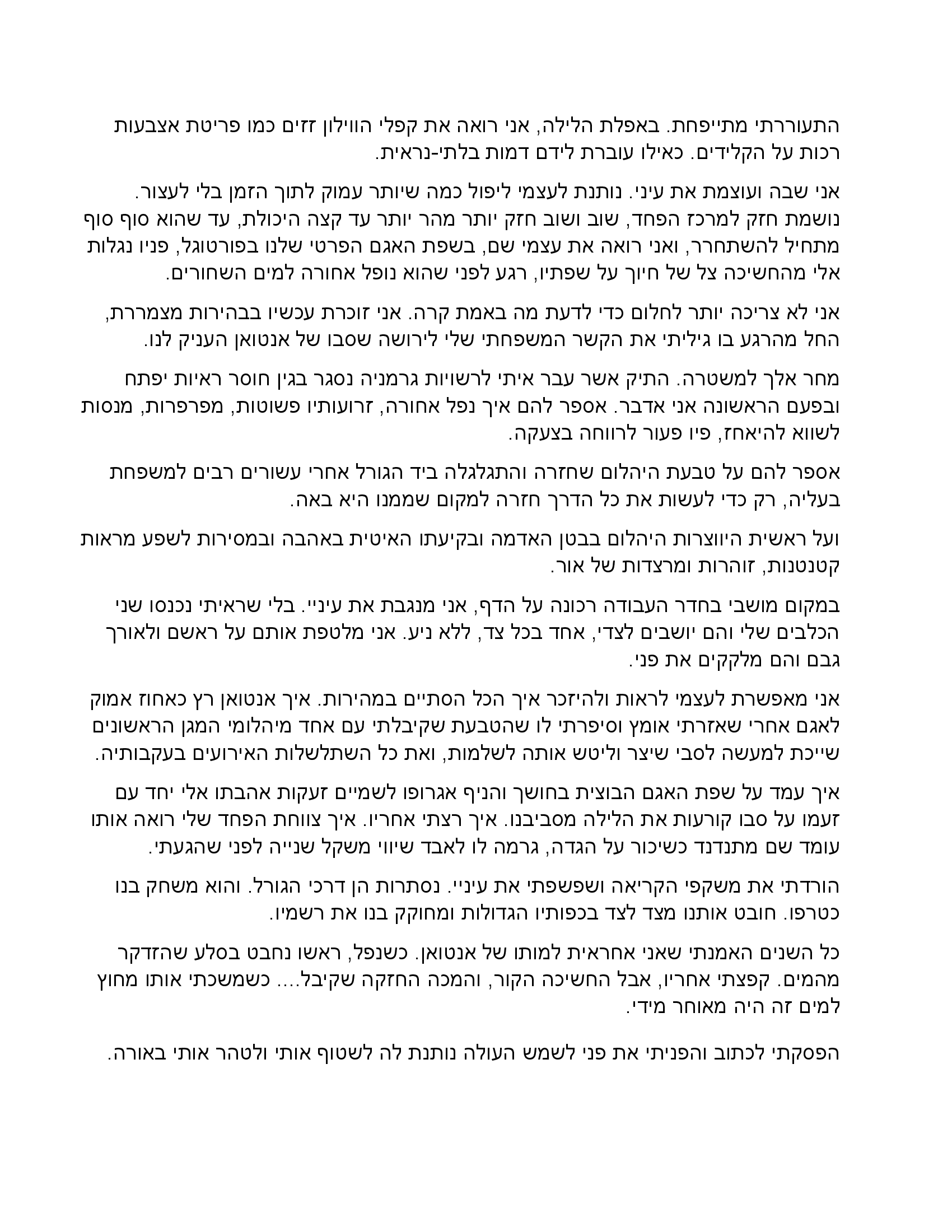 קראתי את 'הירושה' שכתבת רוני. מרגש, מעניין, מרתק, כתוב מדהים. מאוד מאוד אהבתי. אשמח לקרוא עוד סיפורים שלך