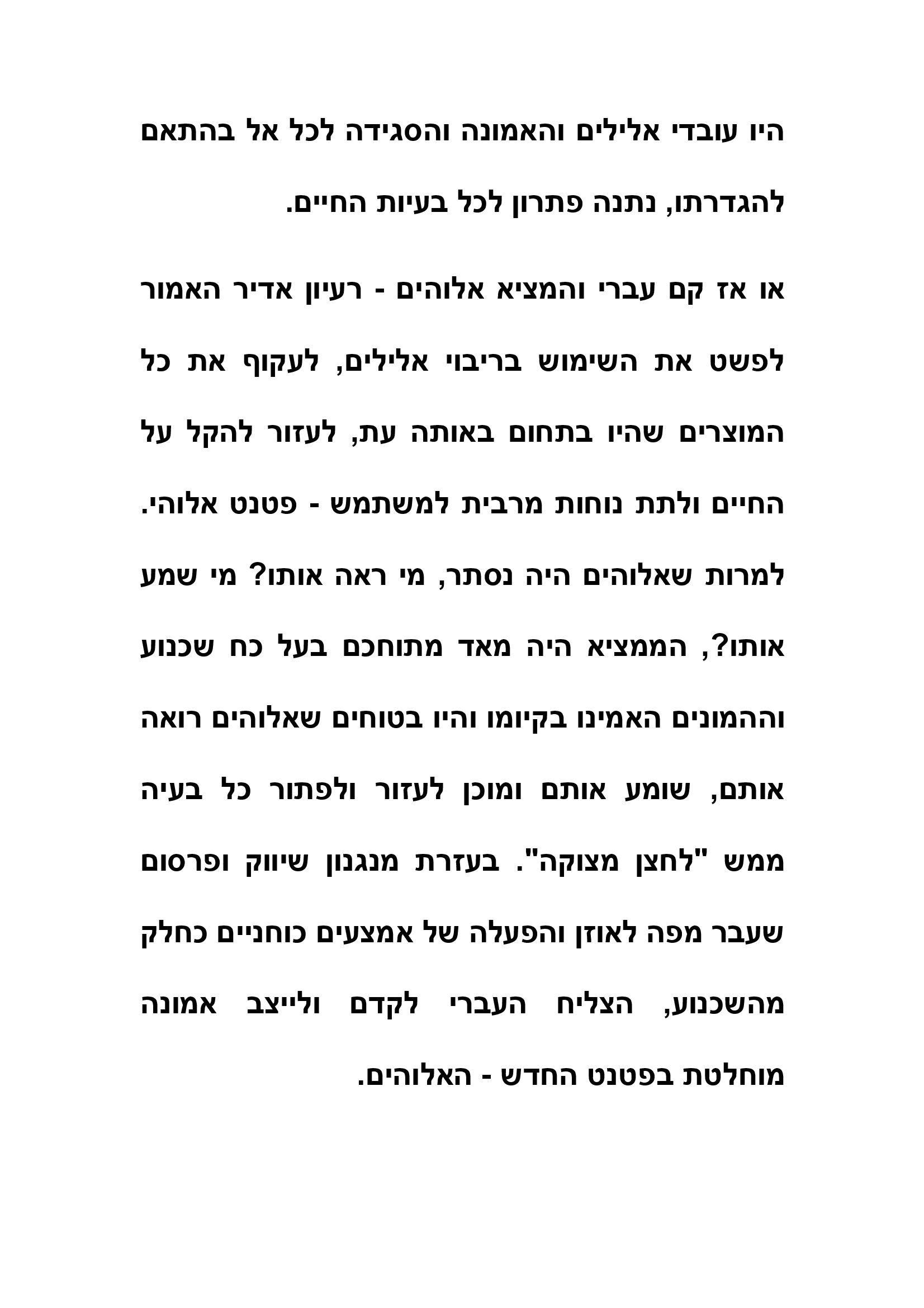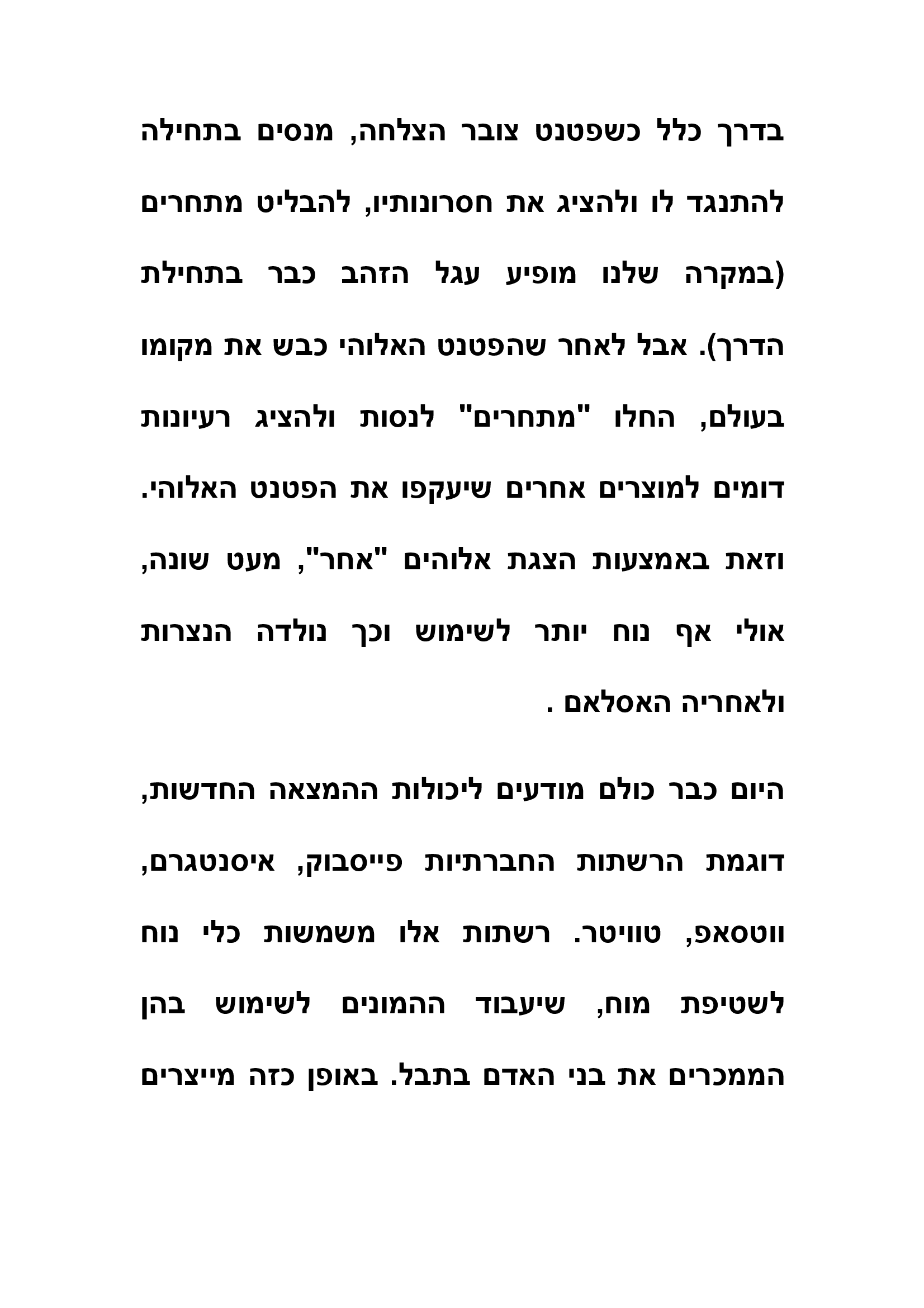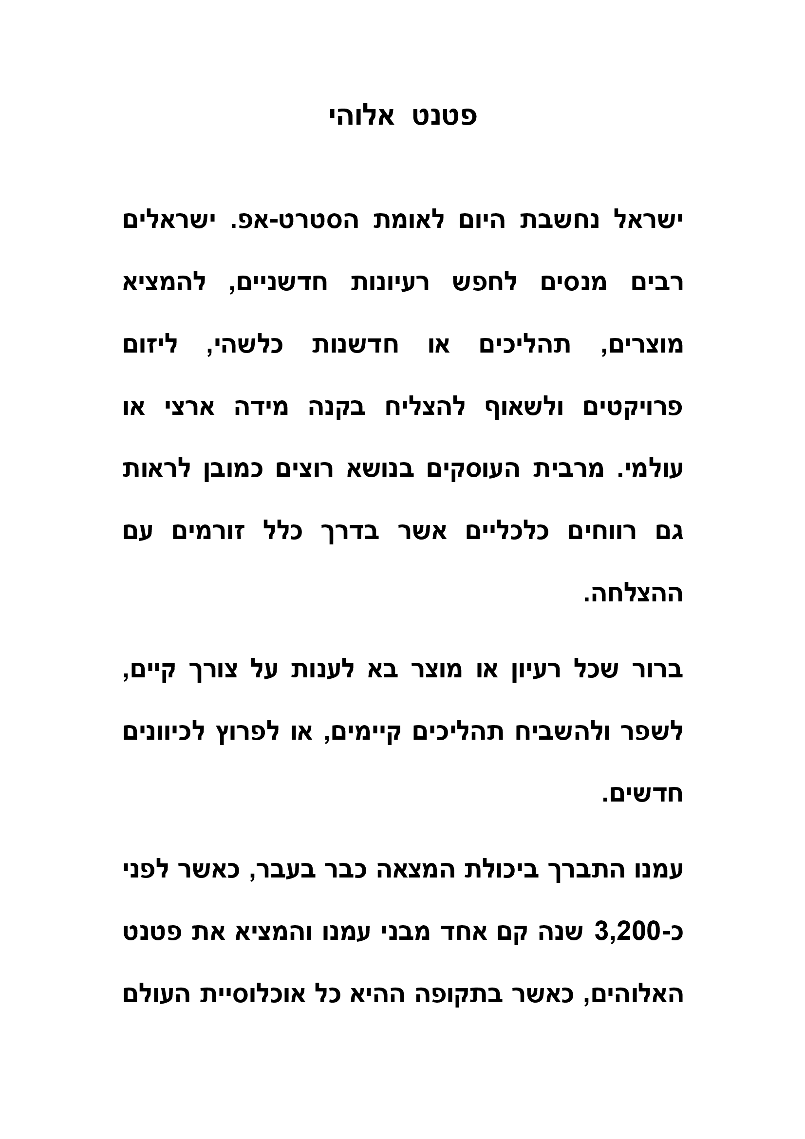 יפה. מחבר המאמר פספס את הכישלון העסקי העצום בסטארט האלוהי. לא ידענו לדרוש ולקבל זכות יוצרים, לא על אלוהים, לא על התנ"ך, לא על הברית החדשה (אחד מבני עמנו אחראי ליצירה) ולא על עשרת הדיברות. במידה והזכויות על עשרת הדיברות היו בידינו והיינו גובים ולו רק 10 אגורות על כל שימוש בדיברה, היינו משוחררים לעד מבעיות כספיות. כשלון איום שגרם לי לאבד את האמונה בחוש העסקי "המפורסם" של היהודים