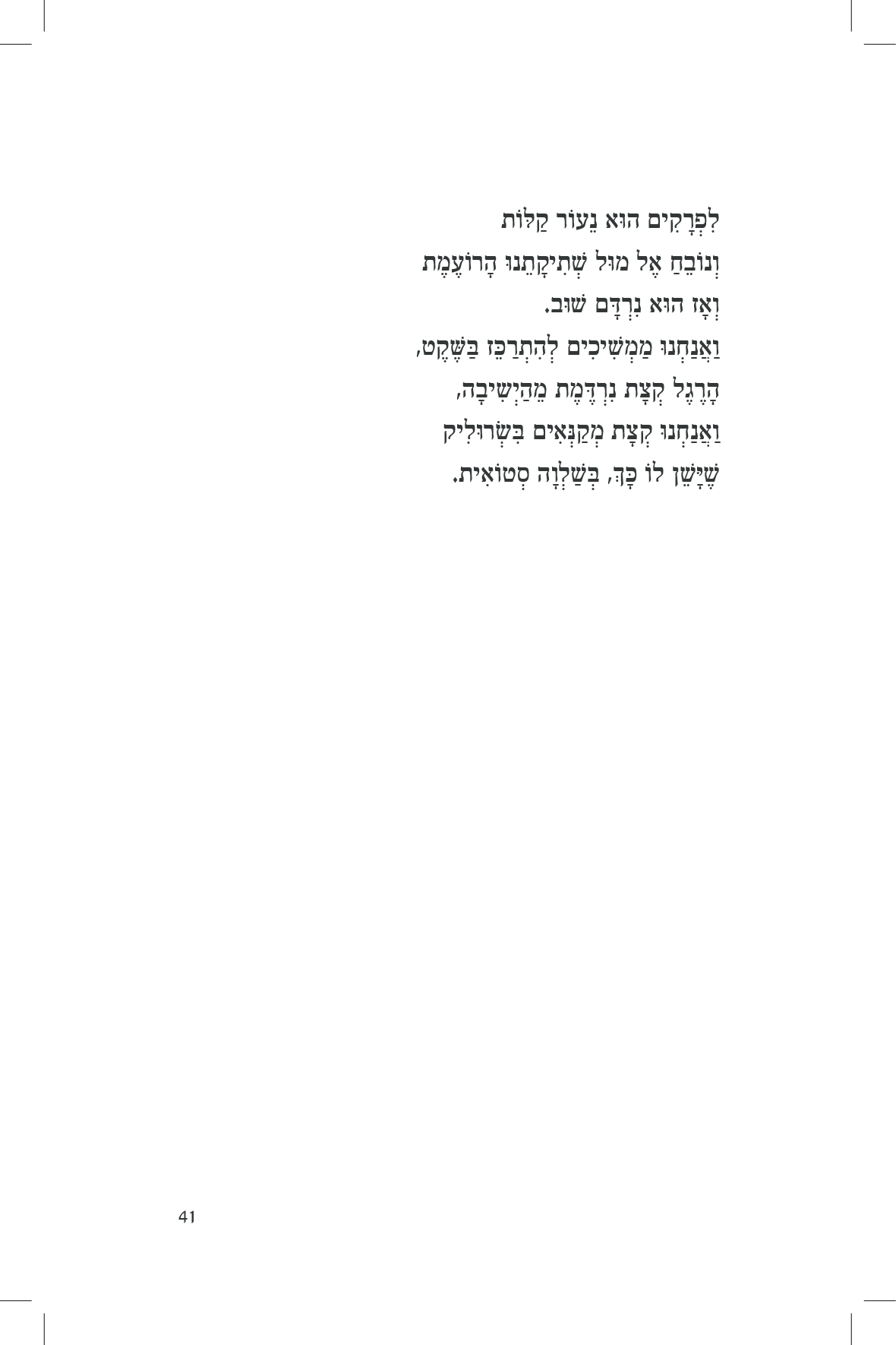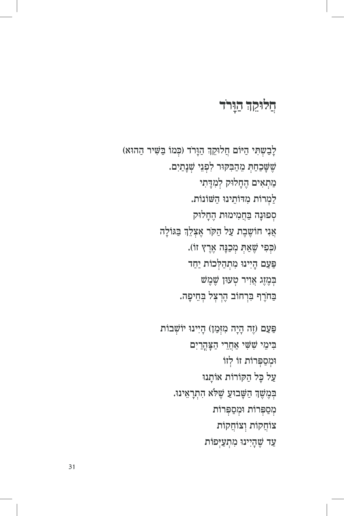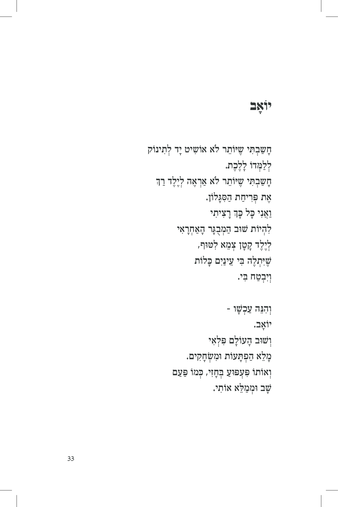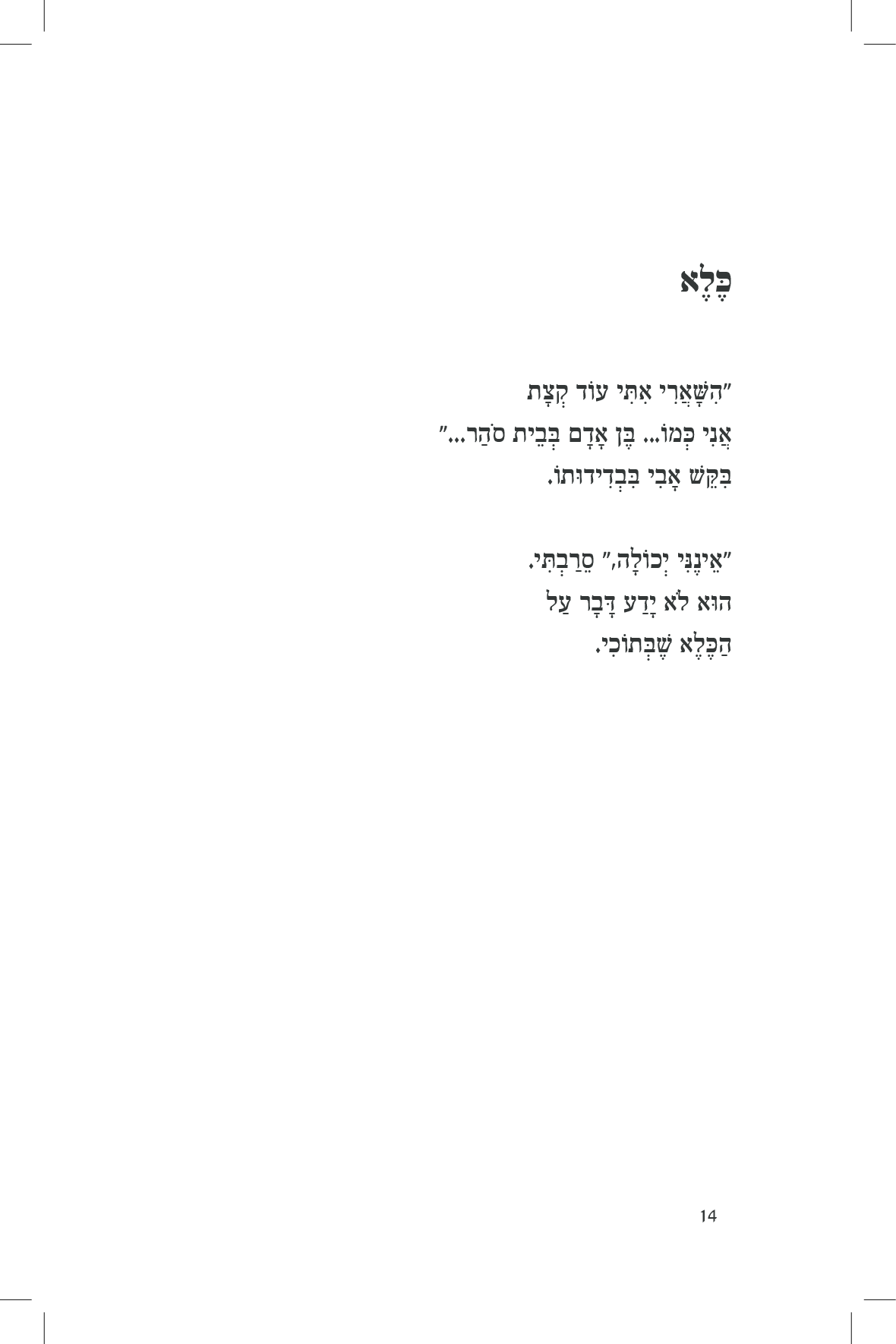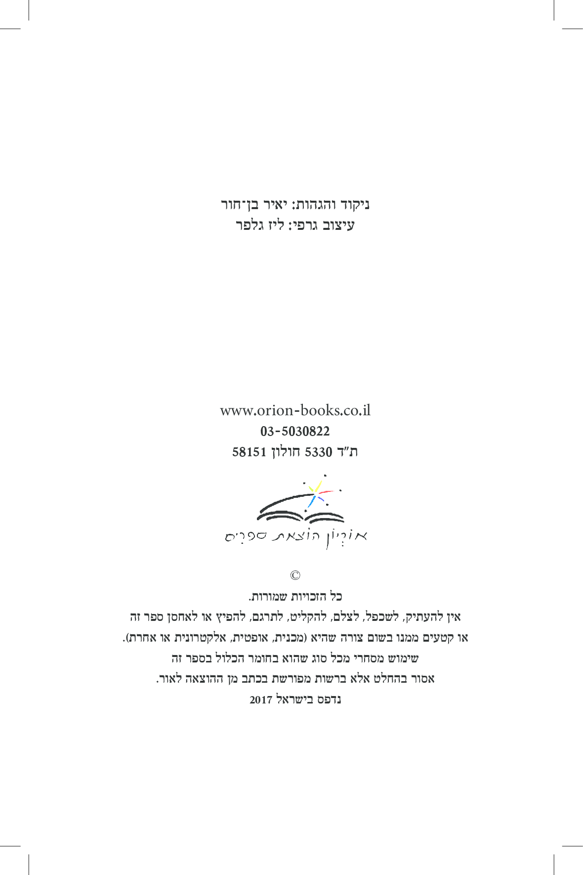 באפשרותך לכתוב כאן את תגובתך ליצירה שקראת. נא לשמור על שפה נאותה ומכובדת כדי שהנהלת האתר תאשר את פרסום תגובתך. כמו-כן ניתן לדרג את הנאתך מקריאת היצירה בין 1-5 כוכבים.