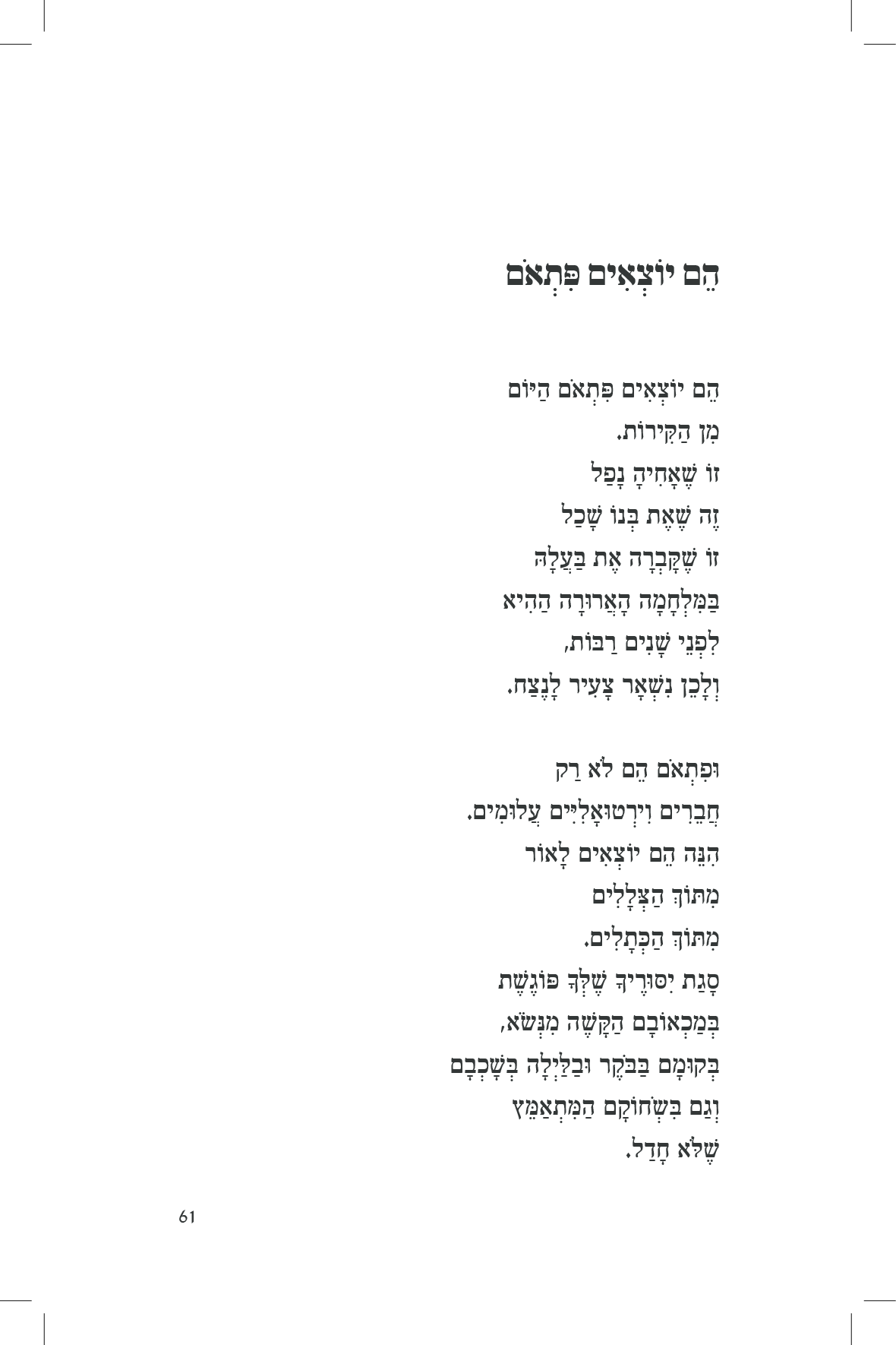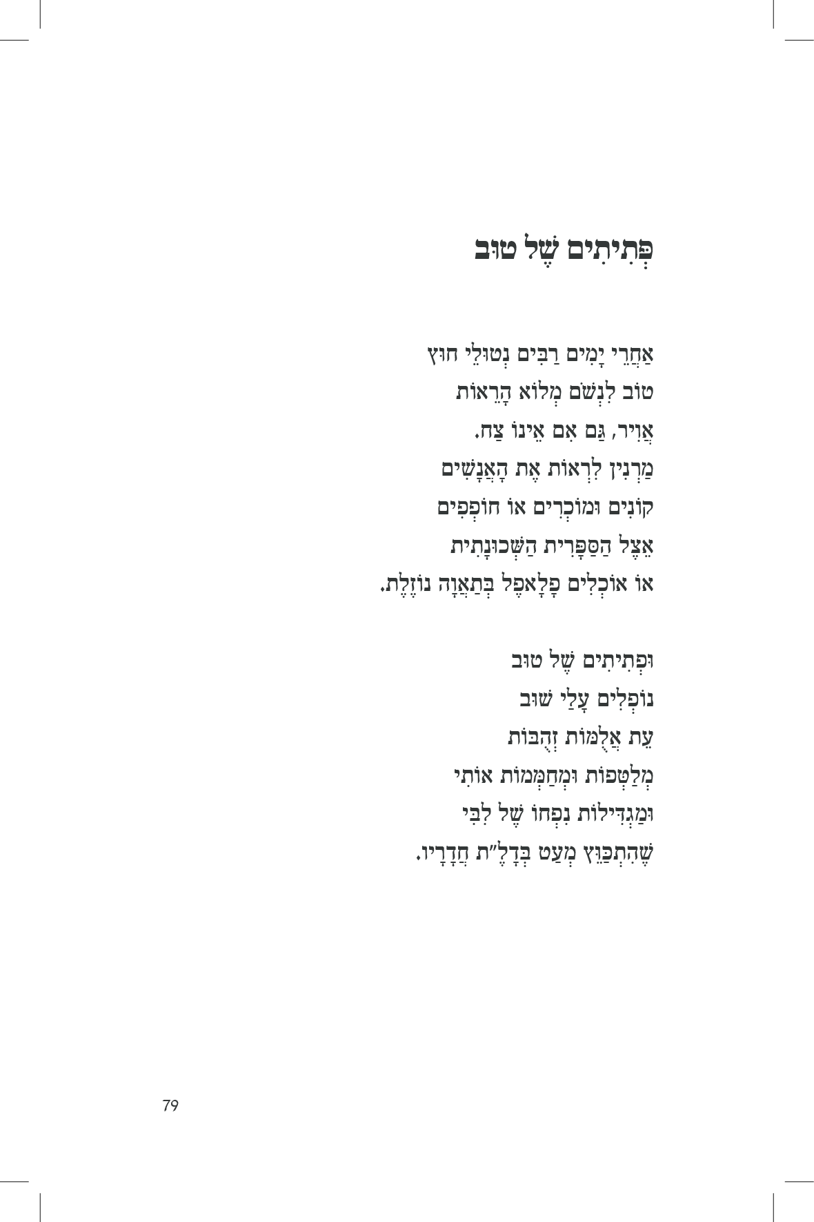 באפשרותך לשתף לקריאת יצירה שאהבת. לחיצה על אייקון שיתוף תפתח מספר אפשרויות לשיתוף : במייל, בפייסבוק או בטוויטר. בכל מקרה חשוב לדעת שהמערכת מאפשרת שיתוף אחד ליצירה אחת לכתובת אחת וזאת כדי להמנע מהצפת הודעות שיתוף ליצירה אחת לאדם אחד.