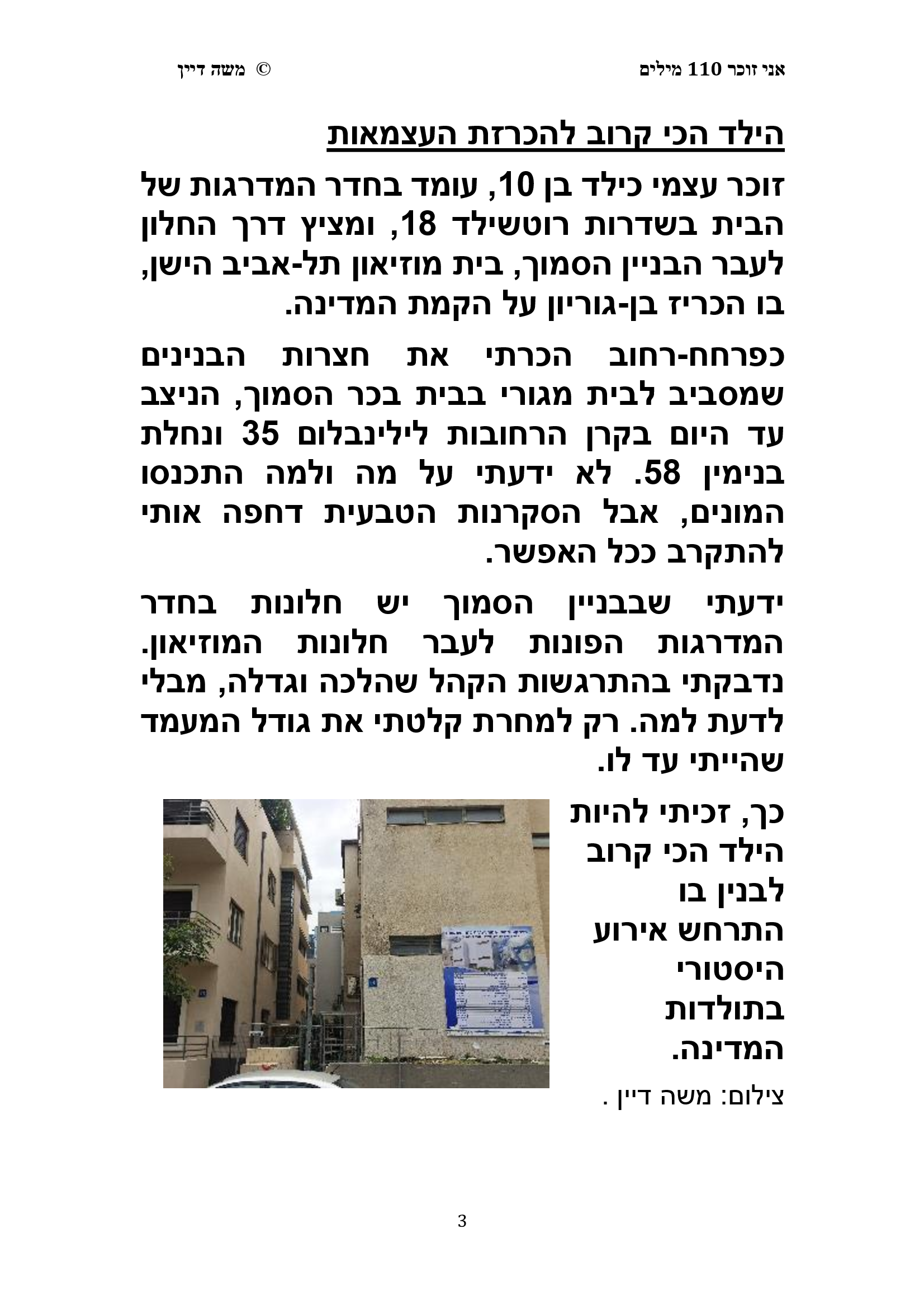 אתה הייתה ילד שובב אבל כותב את ההיסטוריה האמיתית הקרובה של תל אביב. אהבתי לקרוא....