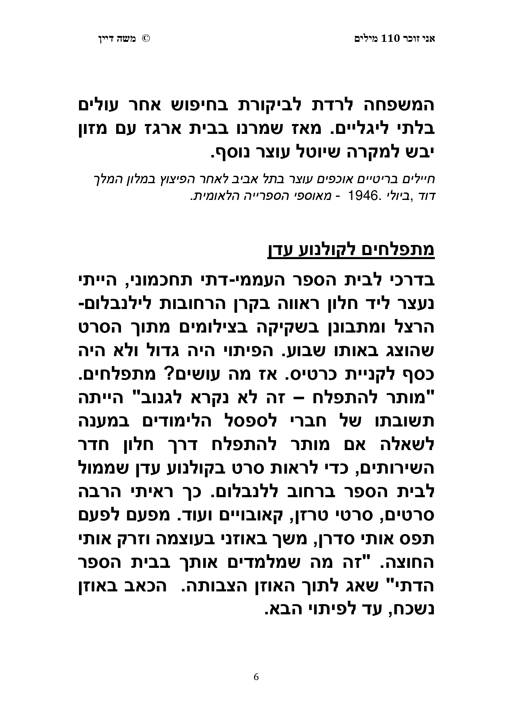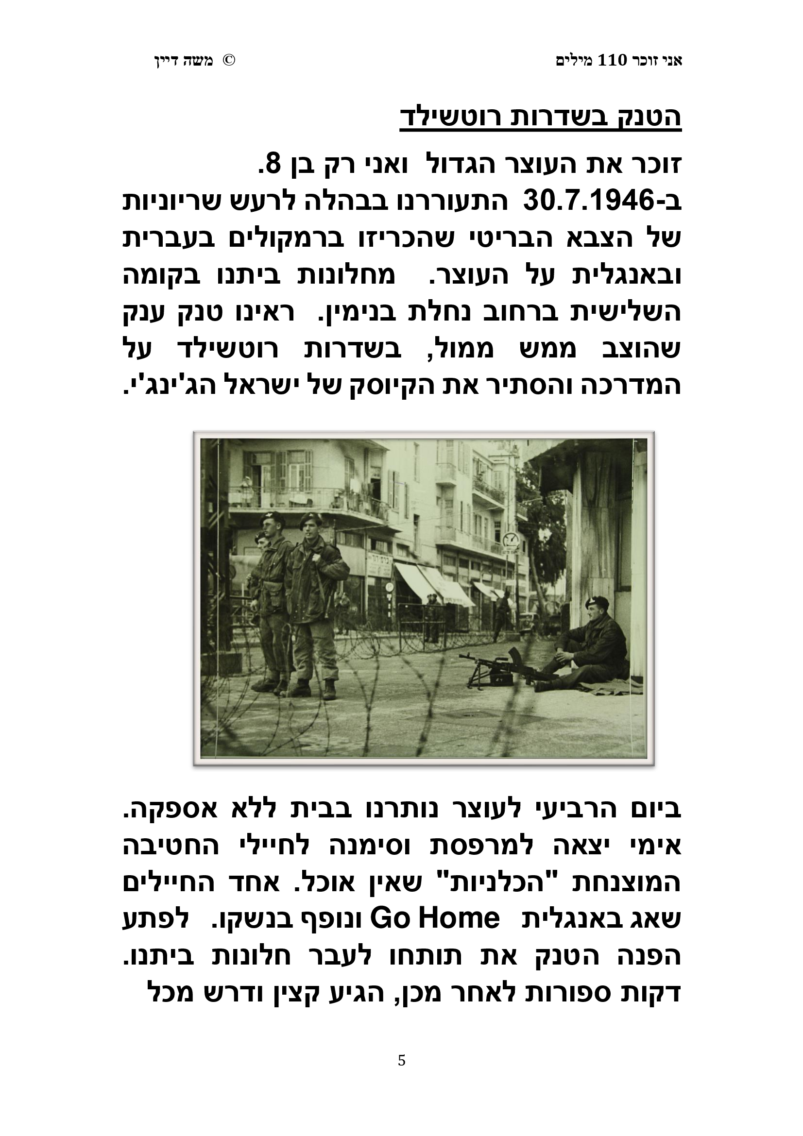 הי משה, נהניתי לקרוא את סיפוריך. כל הכבוד על הזכרון. אני לצערי זוכרת מעט מאד מהתקופה, למרות שגרתי במרכז תל אביב לא רחוק מככר דיזגוף. אני כן זוכרת את אלטלנה בוערת, כי מהחלון שלנו ראו את העשן המיתמר.