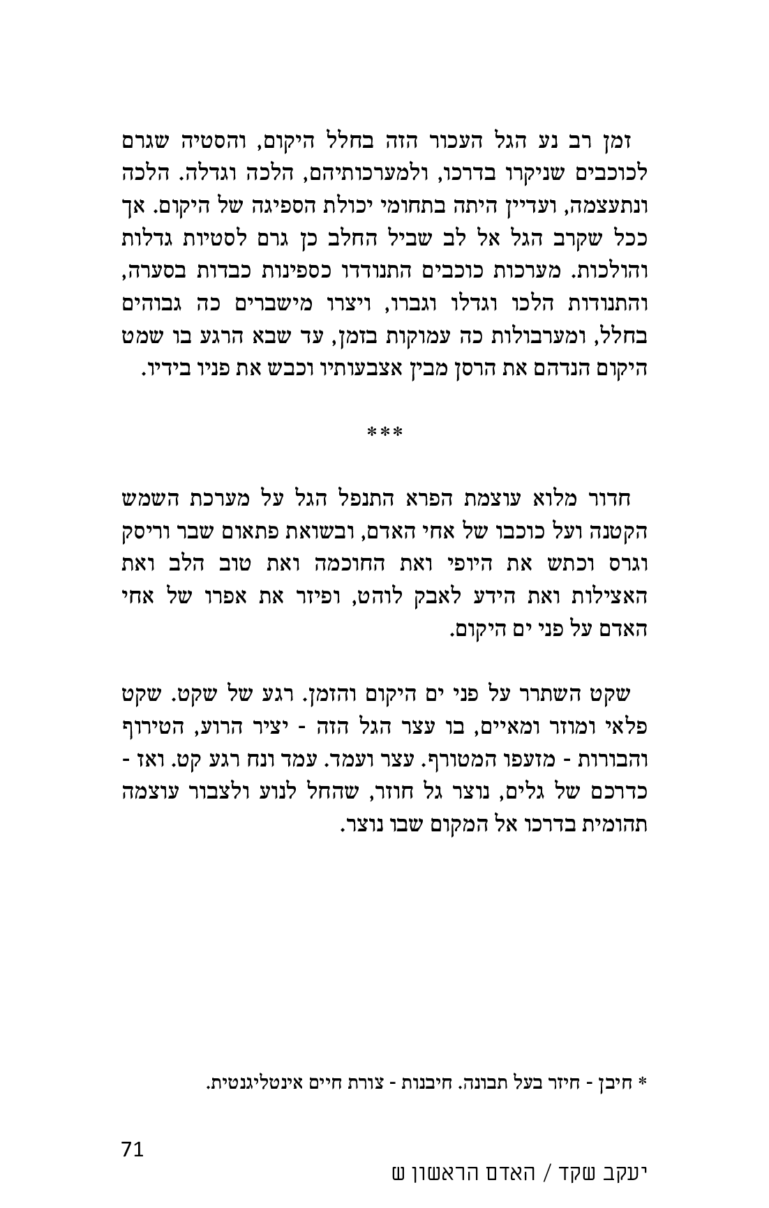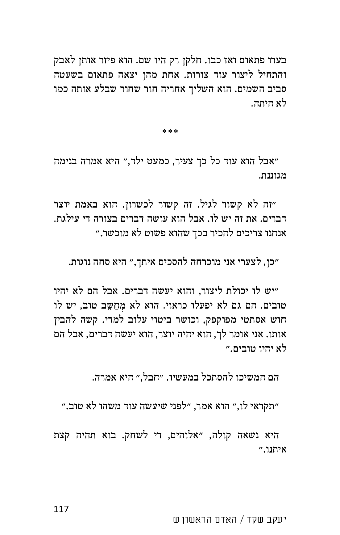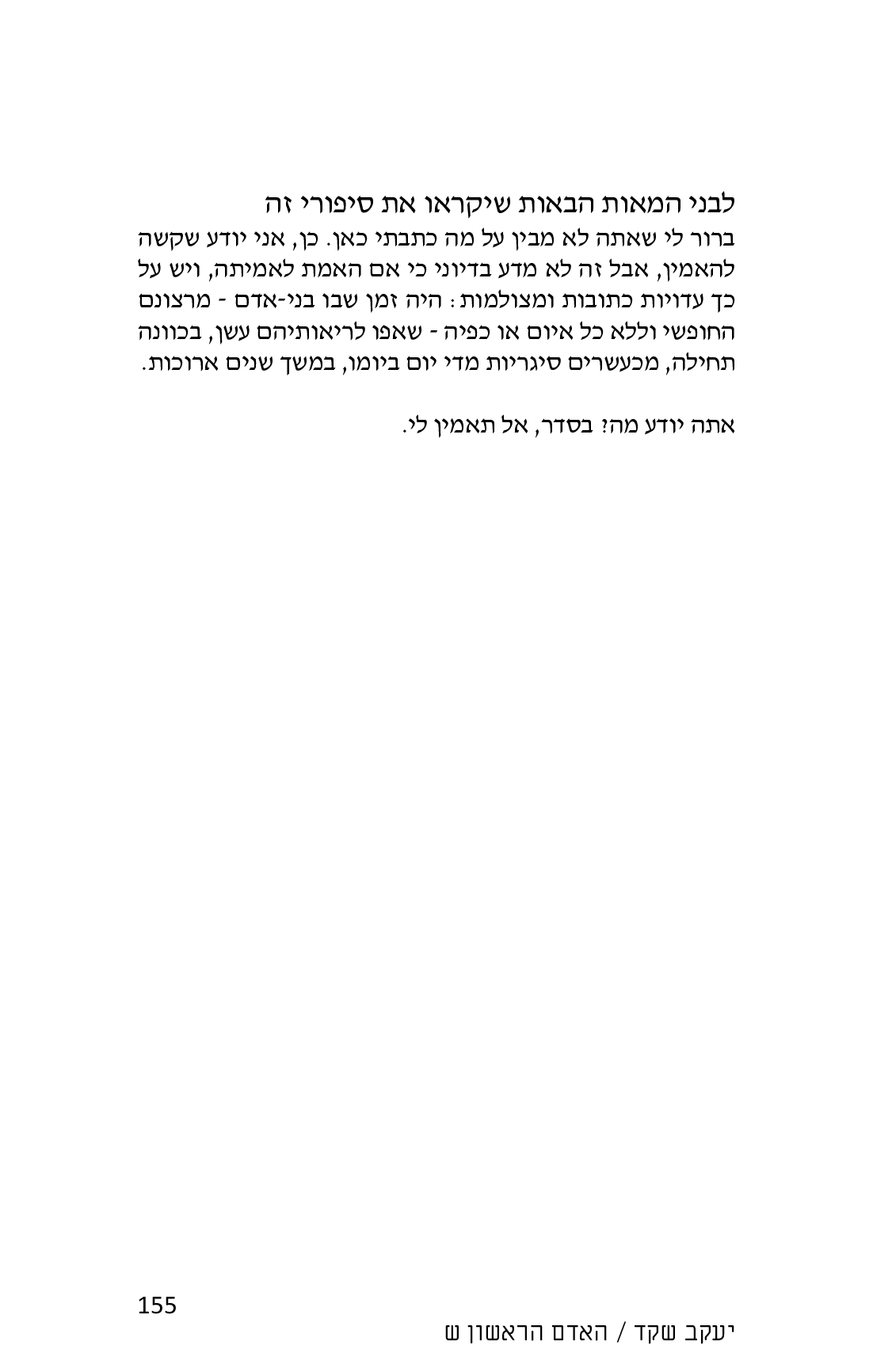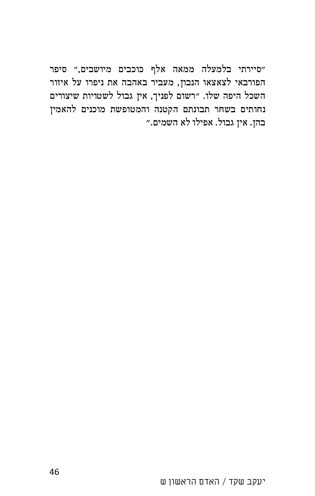 באפשרותך לכתוב כאן את תגובתך ליצירה שקראת. נא לשמור על שפה נאותה ומכובדת כדי שהנהלת האתר תאשר את פרסום תגובתך. כמו-כן ניתן לדרג את הנאתך מקריאת היצירה בין 1-5 כוכבים.