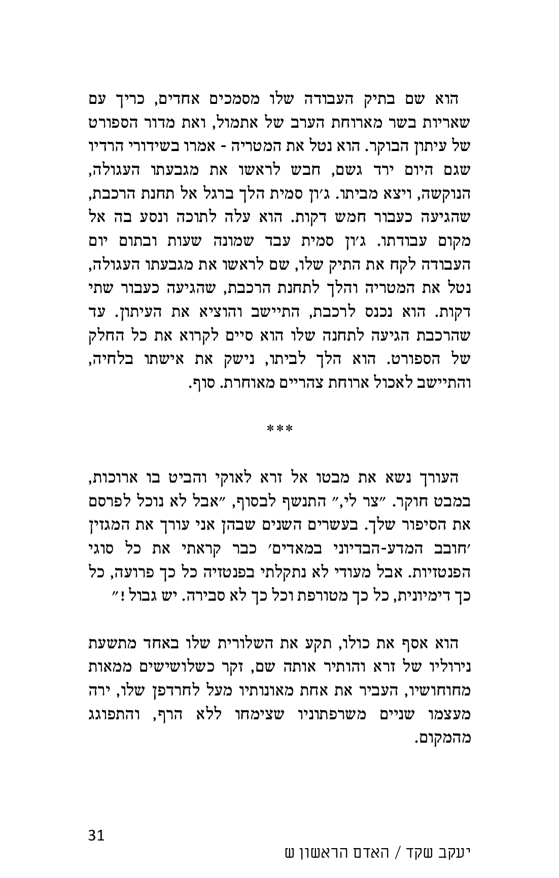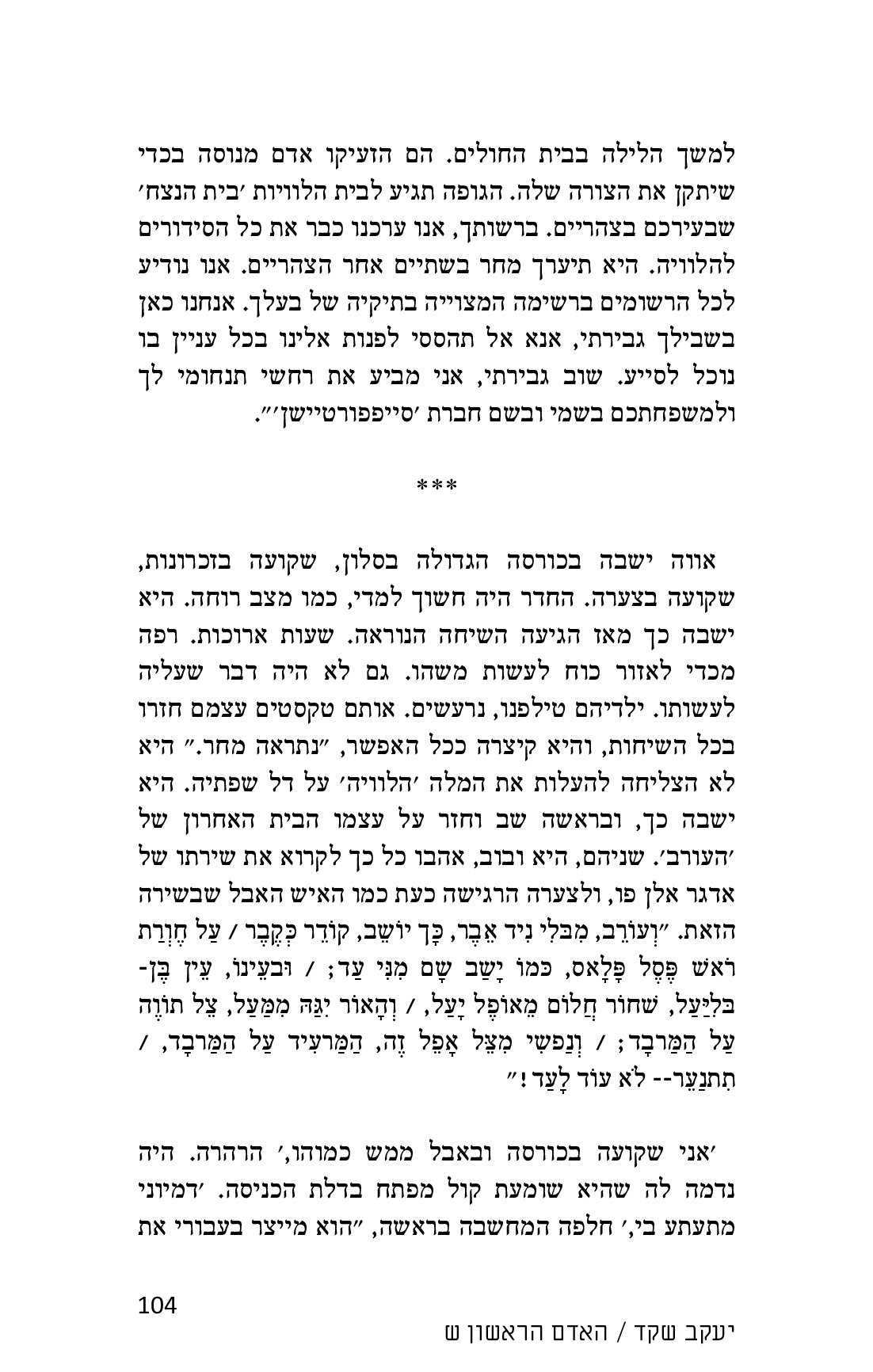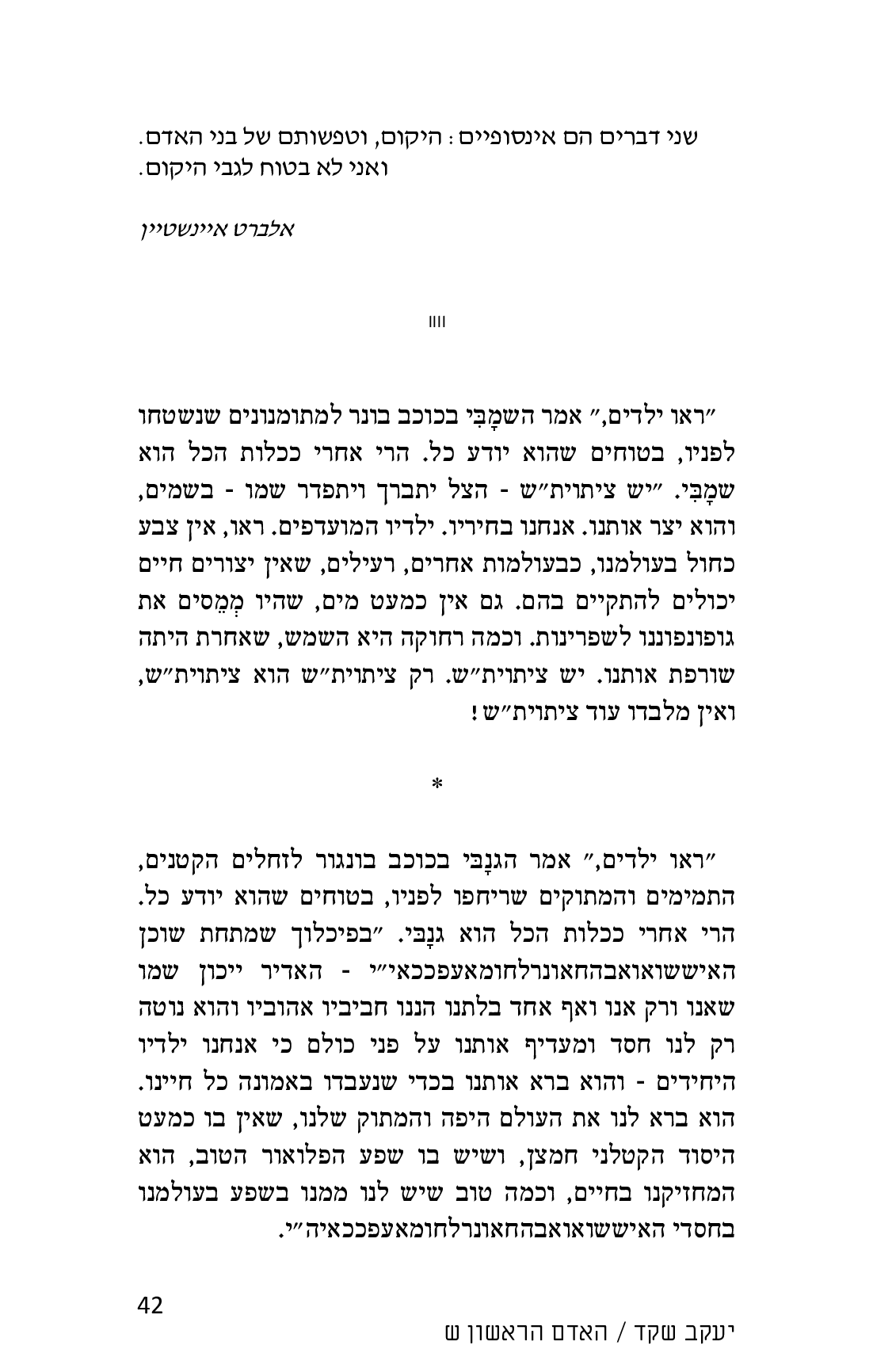 באפשרותך לכתוב כאן את תגובתך ליצירה שקראת. נא לשמור על שפה נאותה ומכובדת כדי שהנהלת האתר תאשר את פרסום תגובתך. כמו-כן ניתן לדרג את הנאתך מקריאת היצירה בין 1-5 כוכבים.