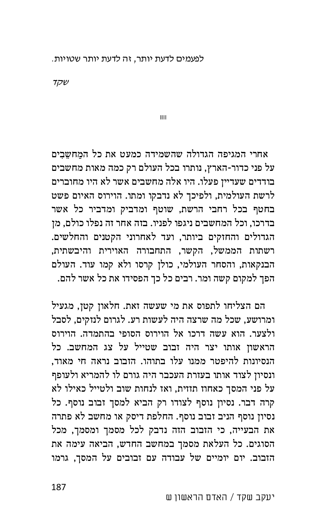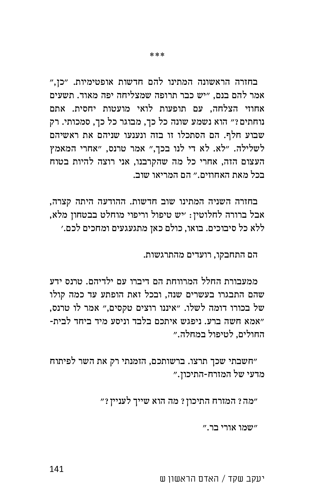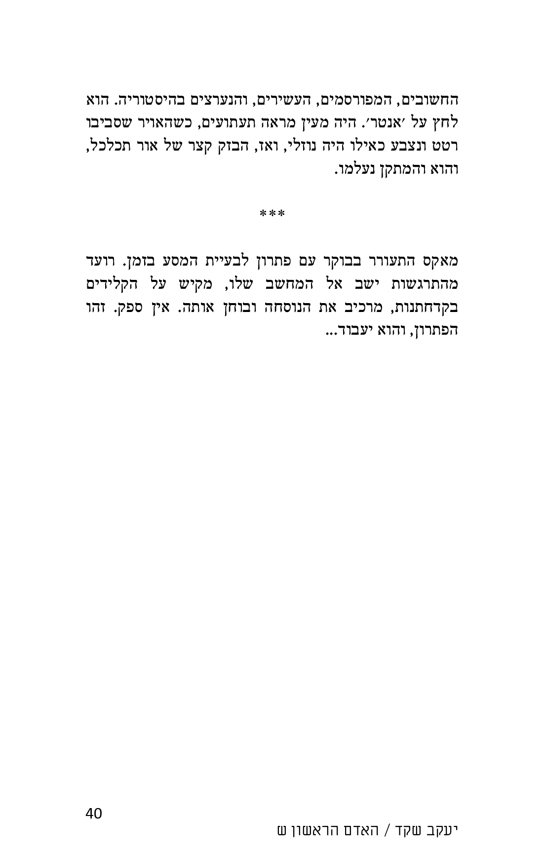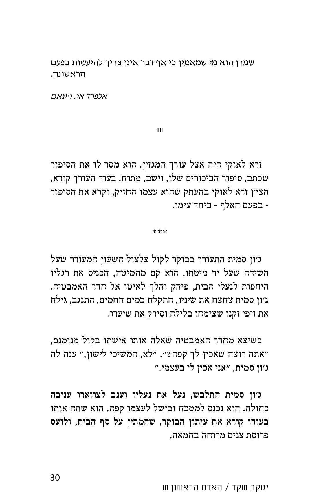 באפשרותך לכתוב כאן את תגובתך ליצירה שקראת. נא לשמור על שפה נאותה ומכובדת כדי שהנהלת האתר תאשר את פרסום תגובתך. כמו-כן ניתן לדרג את הנאתך מקריאת היצירה בין 1-5 כוכבים.