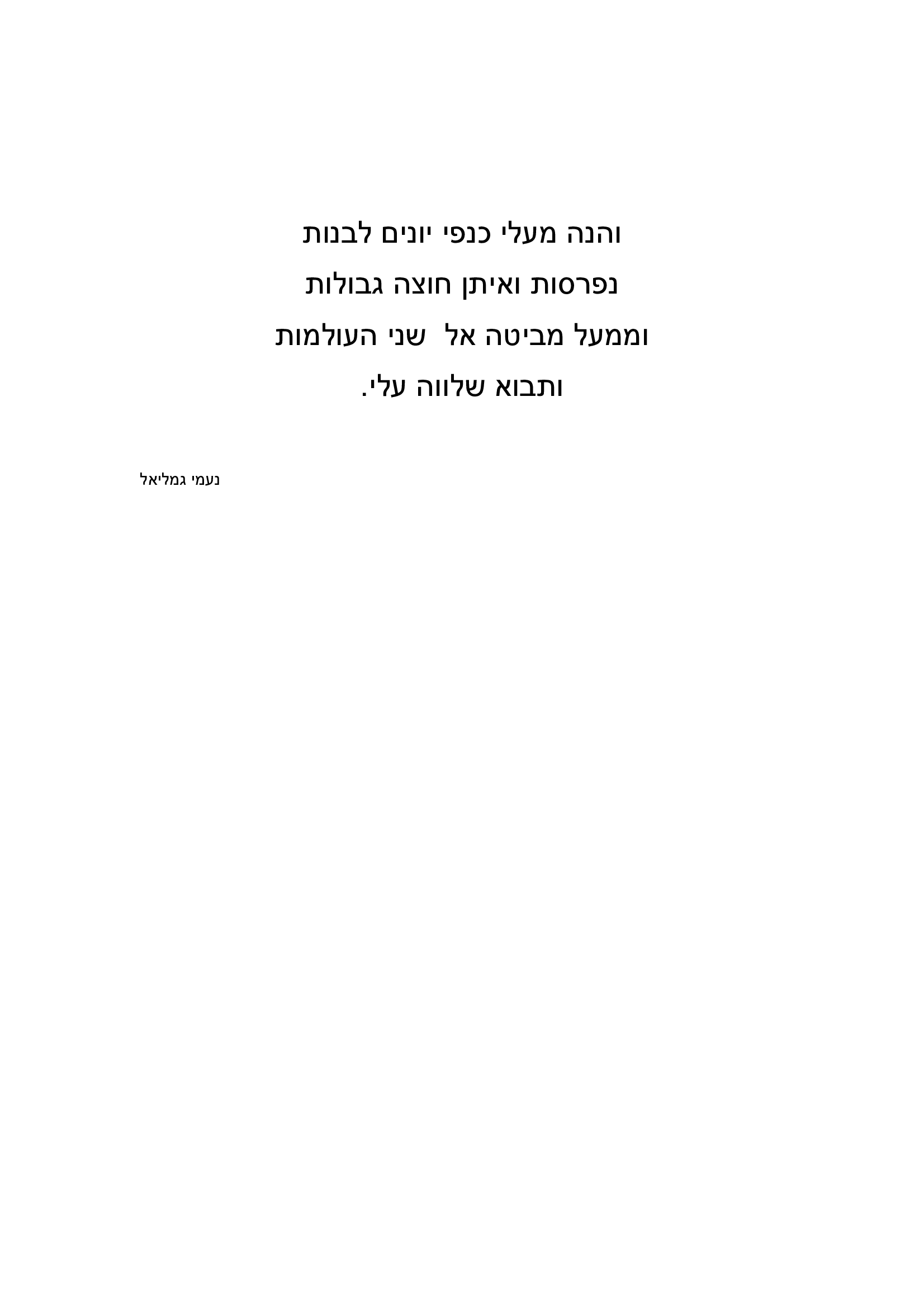 באפשרותך לכתוב כאן את תגובתך ליצירה שקראת. נא לשמור על שפה נאותה ומכובדת כדי שהנהלת האתר תאשר את פרסום תגובתך. כמו-כן ניתן לדרג את הנאתך מקריאת היצירה בין 1-5 כוכבים.