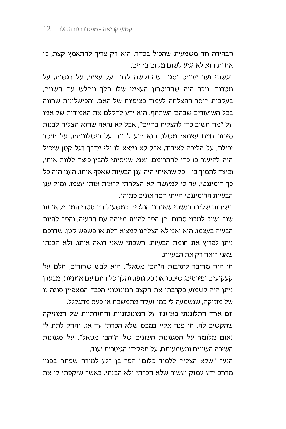באפשרותך לכתוב כאן את תגובתך ליצירה שקראת. נא לשמור על שפה נאותה ומכובדת כדי שהנהלת האתר תאשר את פרסום תגובתך. כמו-כן ניתן לדרג את הנאתך מקריאת היצירה בין 1-5 כוכבים.