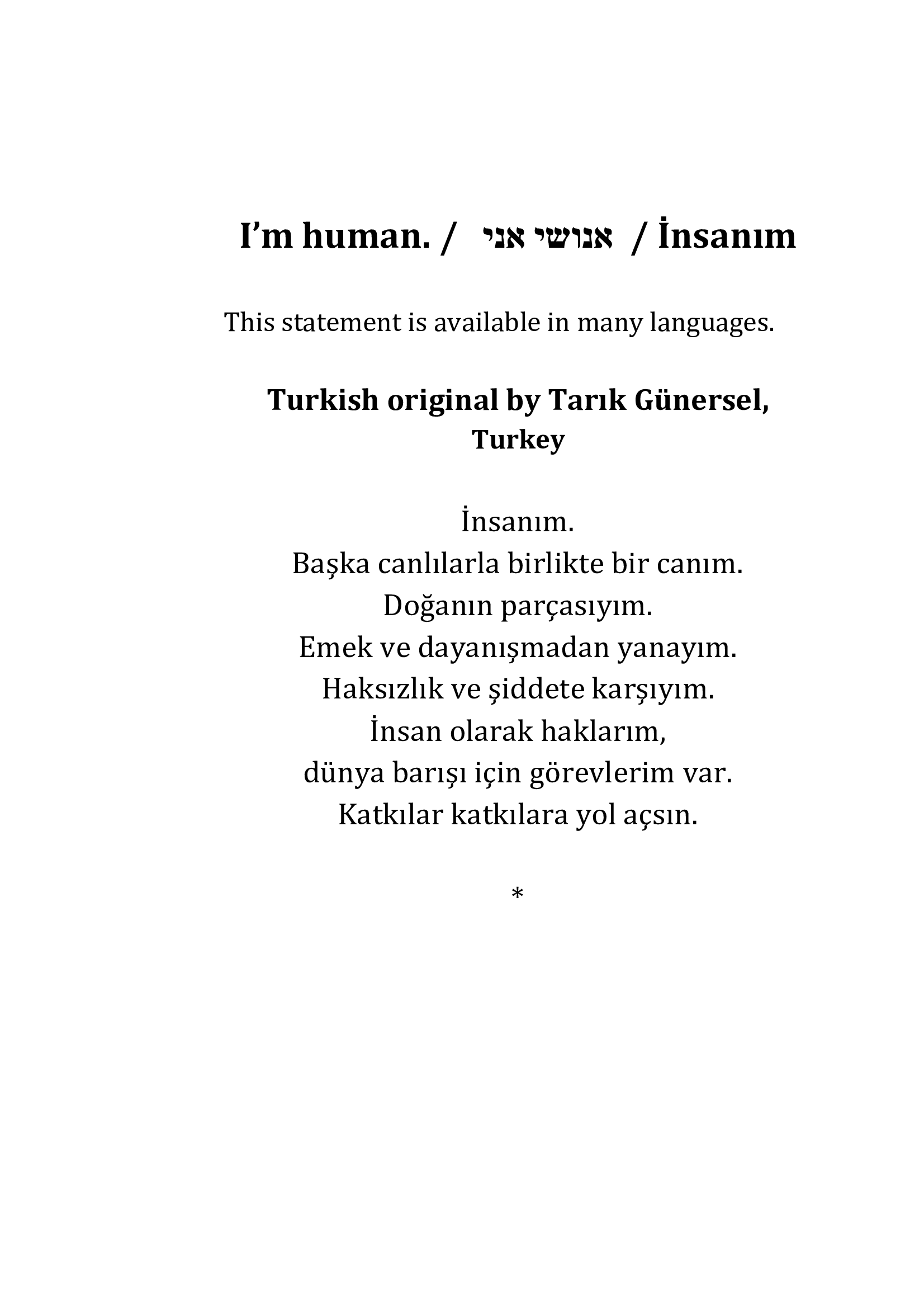 A Humanist statement | Tarık Günersel