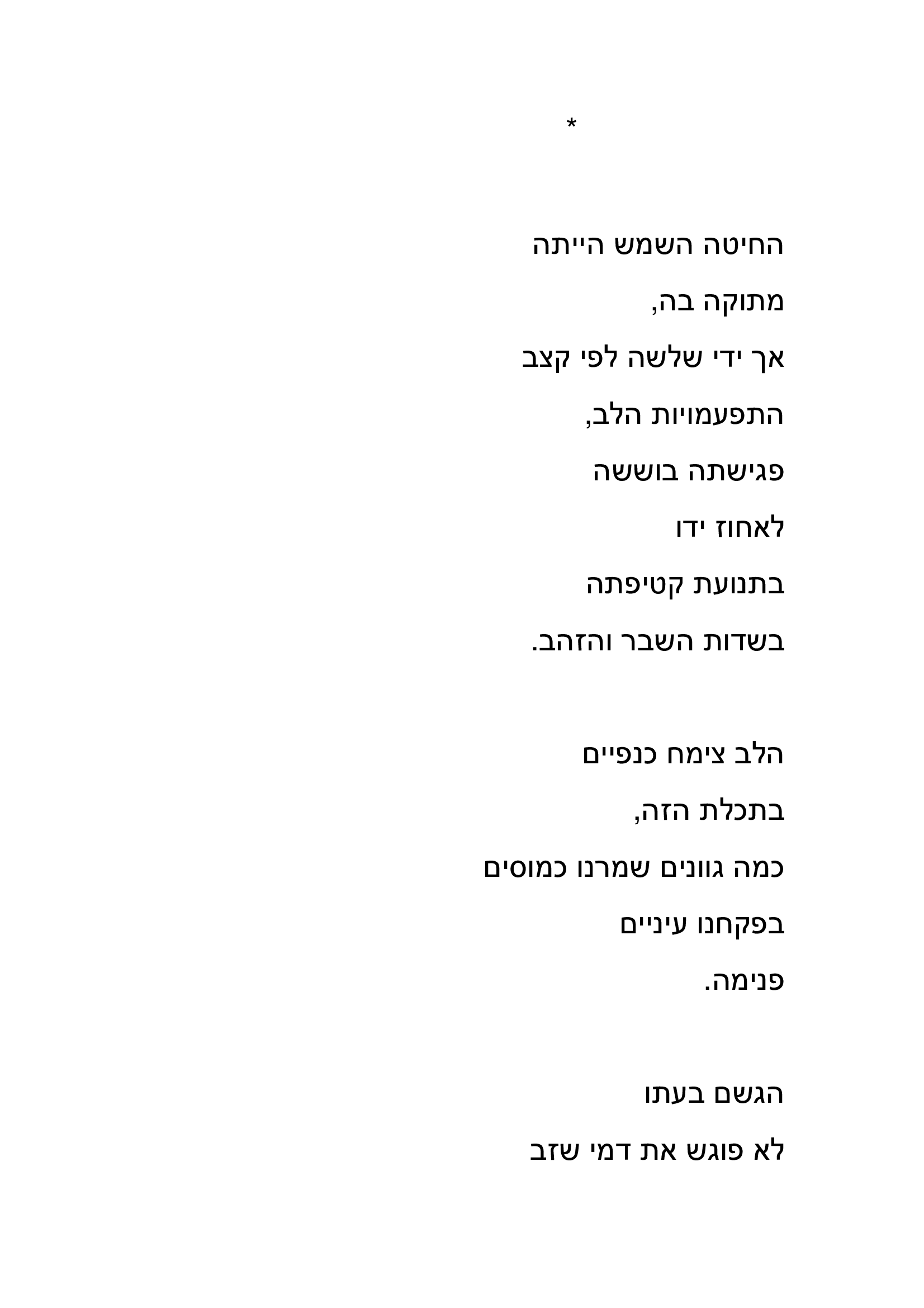 באפשרותך לכתוב כאן את תגובתך ליצירה שקראת. נא לשמור על שפה נאותה ומכובדת כדי שהנהלת האתר תאשר את פרסום תגובתך. כמו-כן ניתן לדרג את הנאתך מקריאת היצירה בין 1-5 כוכבים.