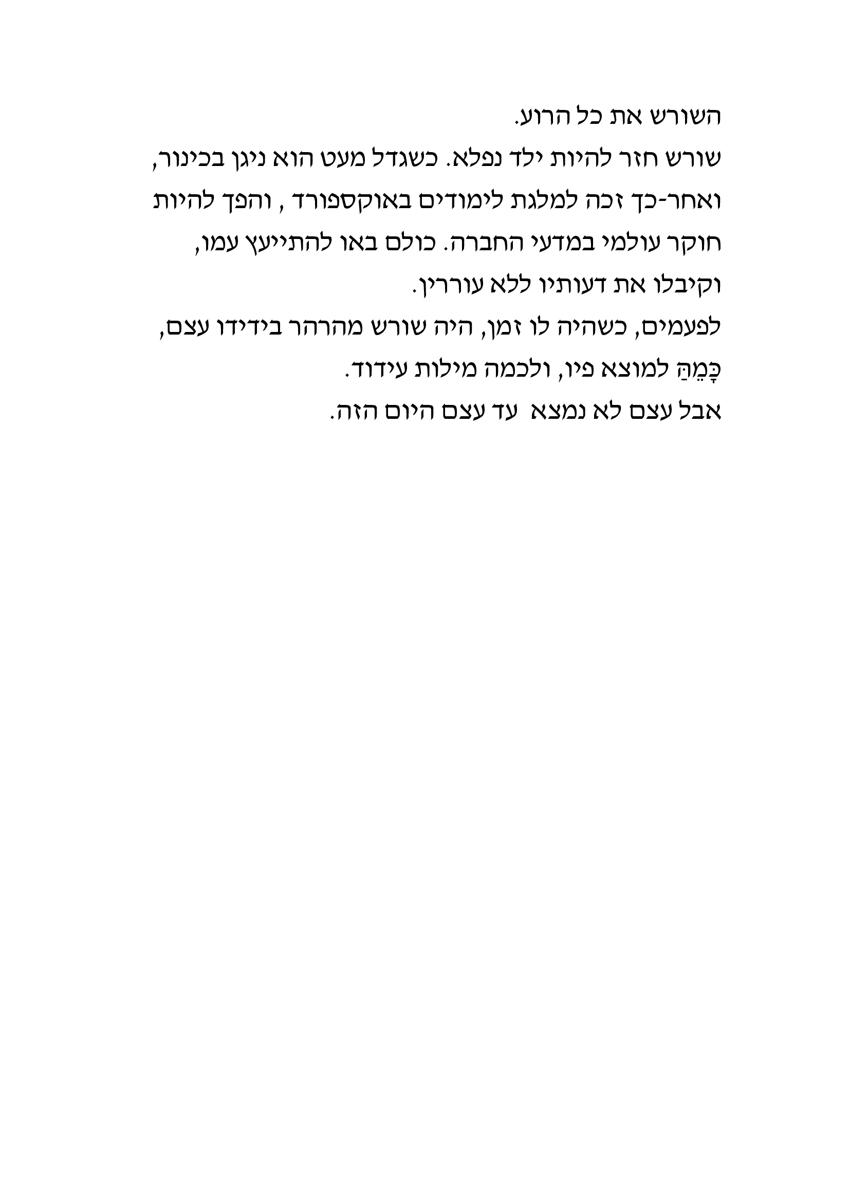 באפשרותך לכתוב כאן את תגובתך ליצירה שקראת. נא לשמור על שפה נאותה ומכובדת כדי שהנהלת האתר תאשר את פרסום תגובתך. כמו-כן ניתן לדרג את הנאתך מקריאת היצירה בין 1-5 כוכבים.