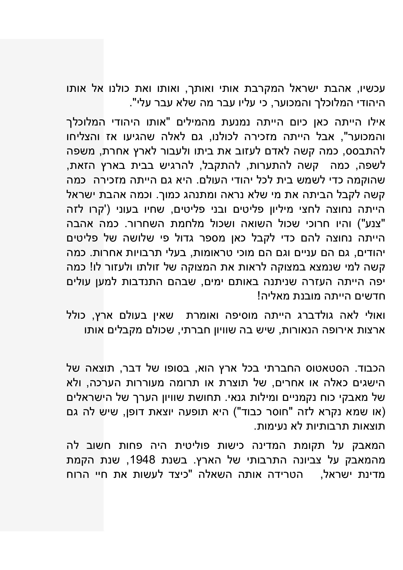 באפשרותך לכתוב כאן את תגובתך ליצירה שקראת. נא לשמור על שפה נאותה ומכובדת כדי שהנהלת האתר תאשר את פרסום תגובתך. כמו-כן ניתן לדרג את הנאתך מקריאת היצירה בין 1-5 כוכבים.