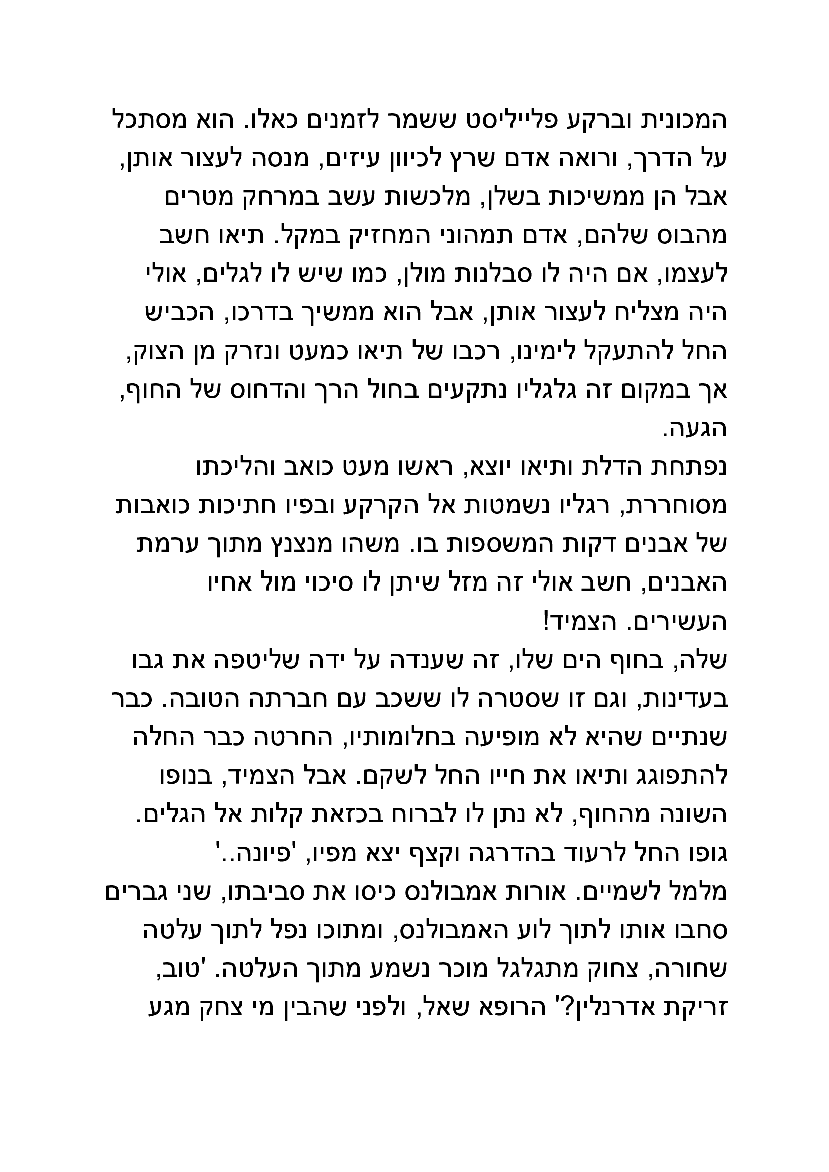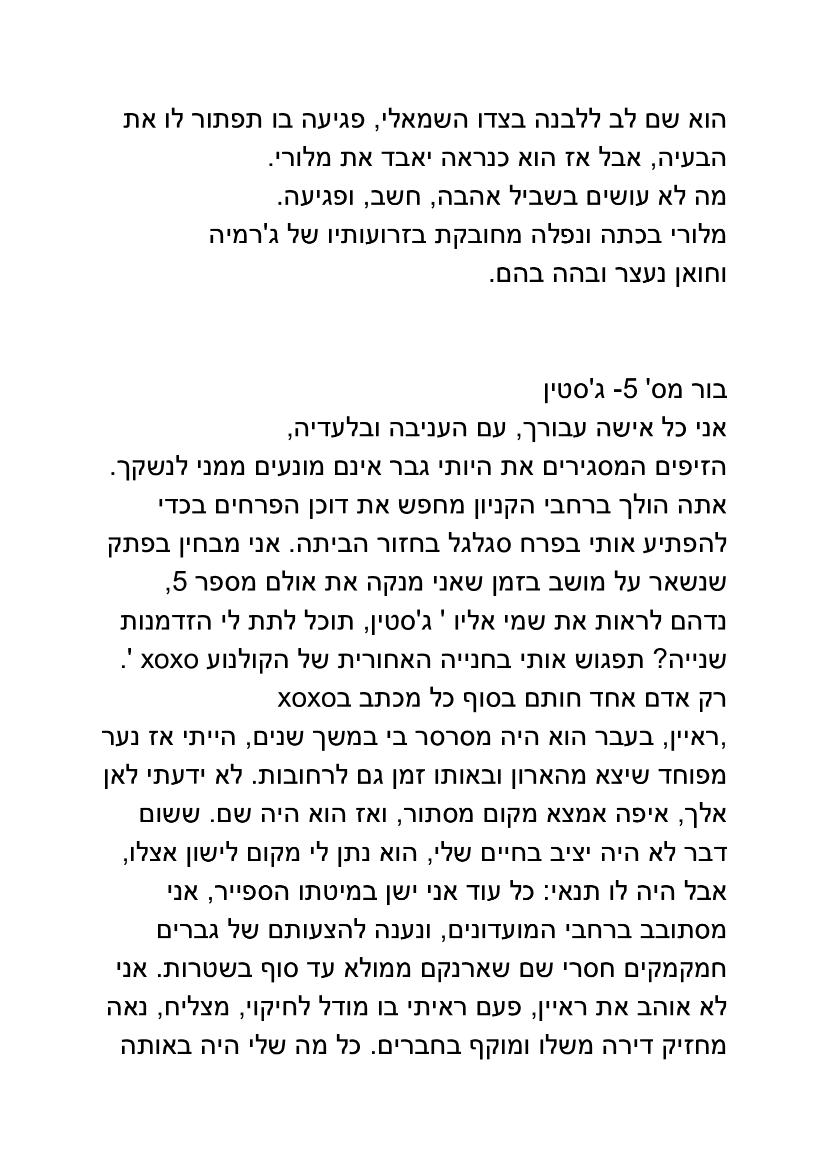 באפשרותך לכתוב כאן את תגובתך ליצירה שקראת. נא לשמור על שפה נאותה ומכובדת כדי שהנהלת האתר תאשר את פרסום תגובתך. כמו-כן ניתן לדרג את הנאתך מקריאת היצירה בין 1-5 כוכבים.