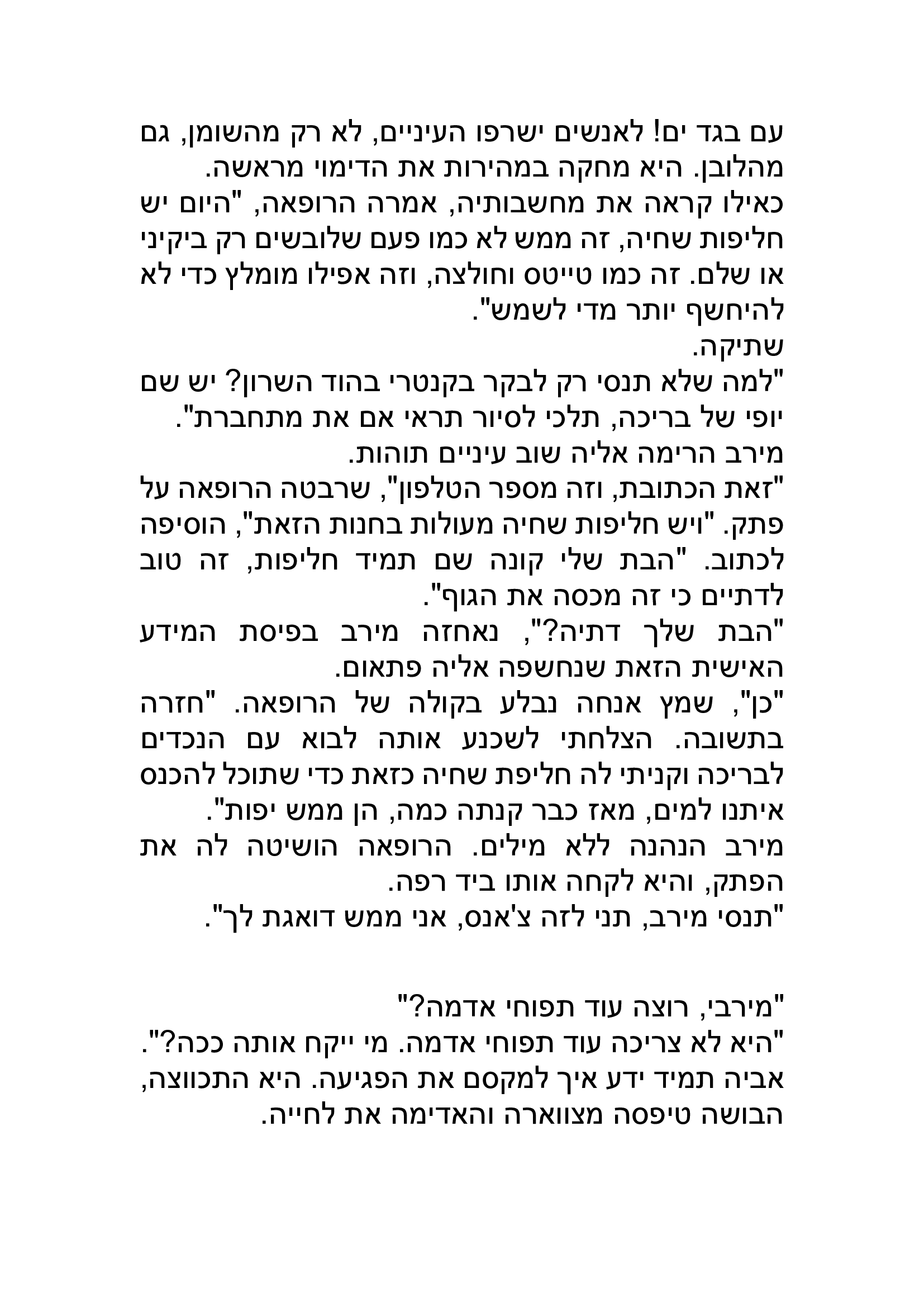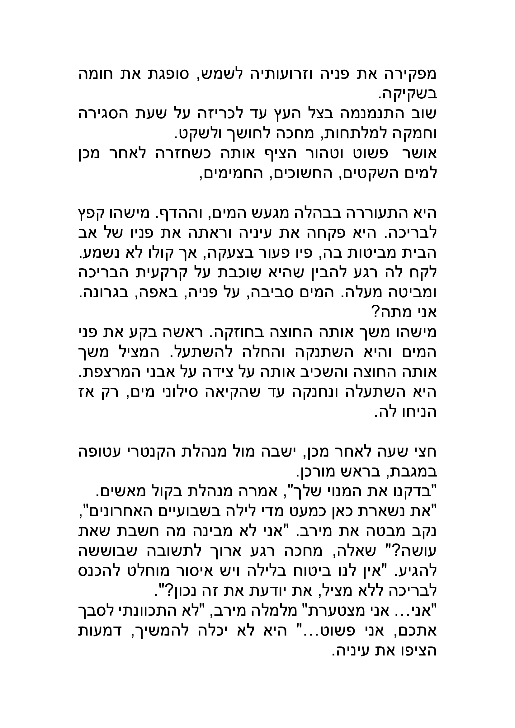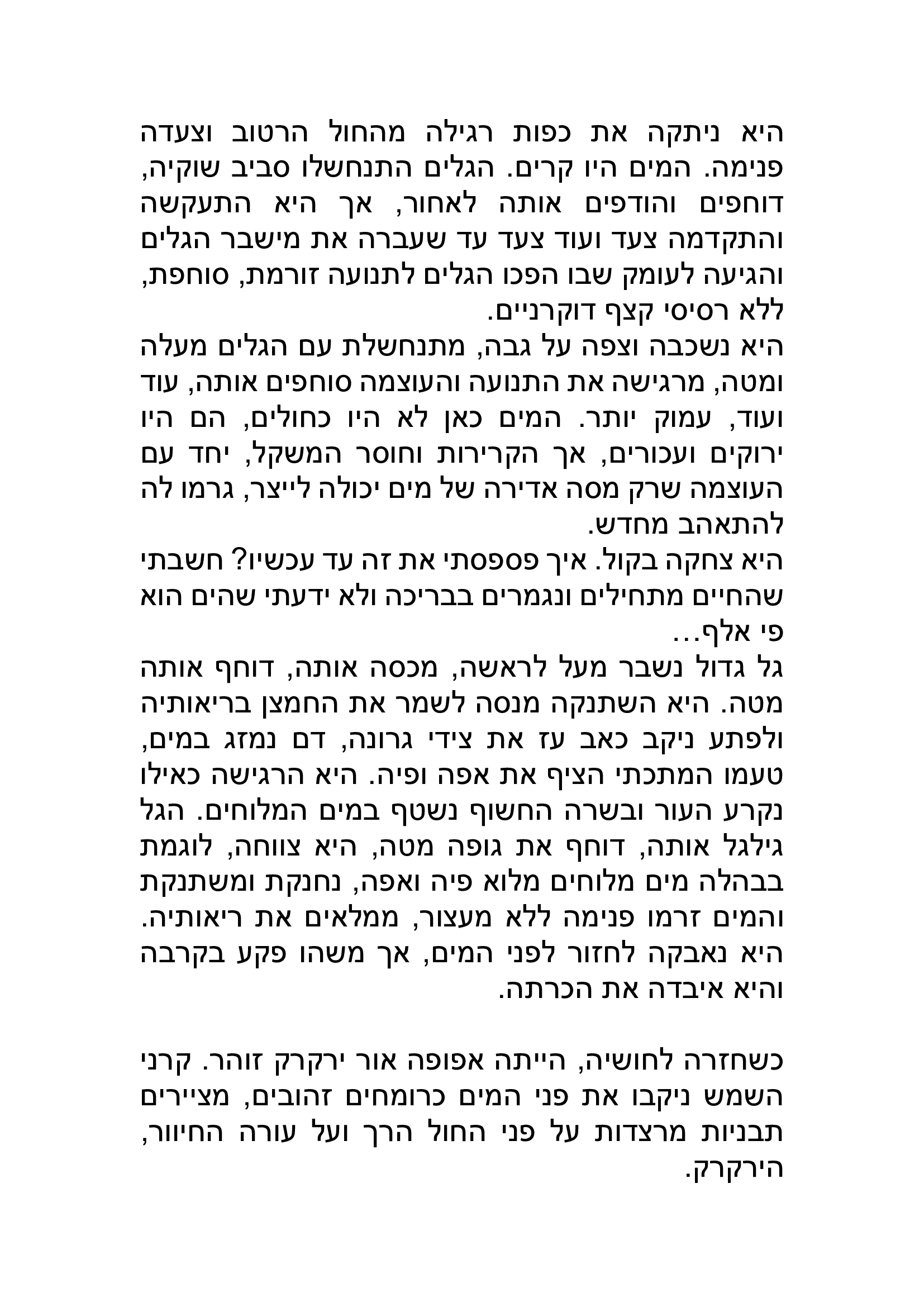 פגשתי את עצמי דרך הסיפור בעומקים שונים. סיפור של מים שאפשר לרוות ממנו עוצמה ותובנות עד כמה שמספיק בטוב. וכך עשיתי. סיפור מים בתוכן ובהוויה. אהבתי. כמה מרגשת את בשמתי.