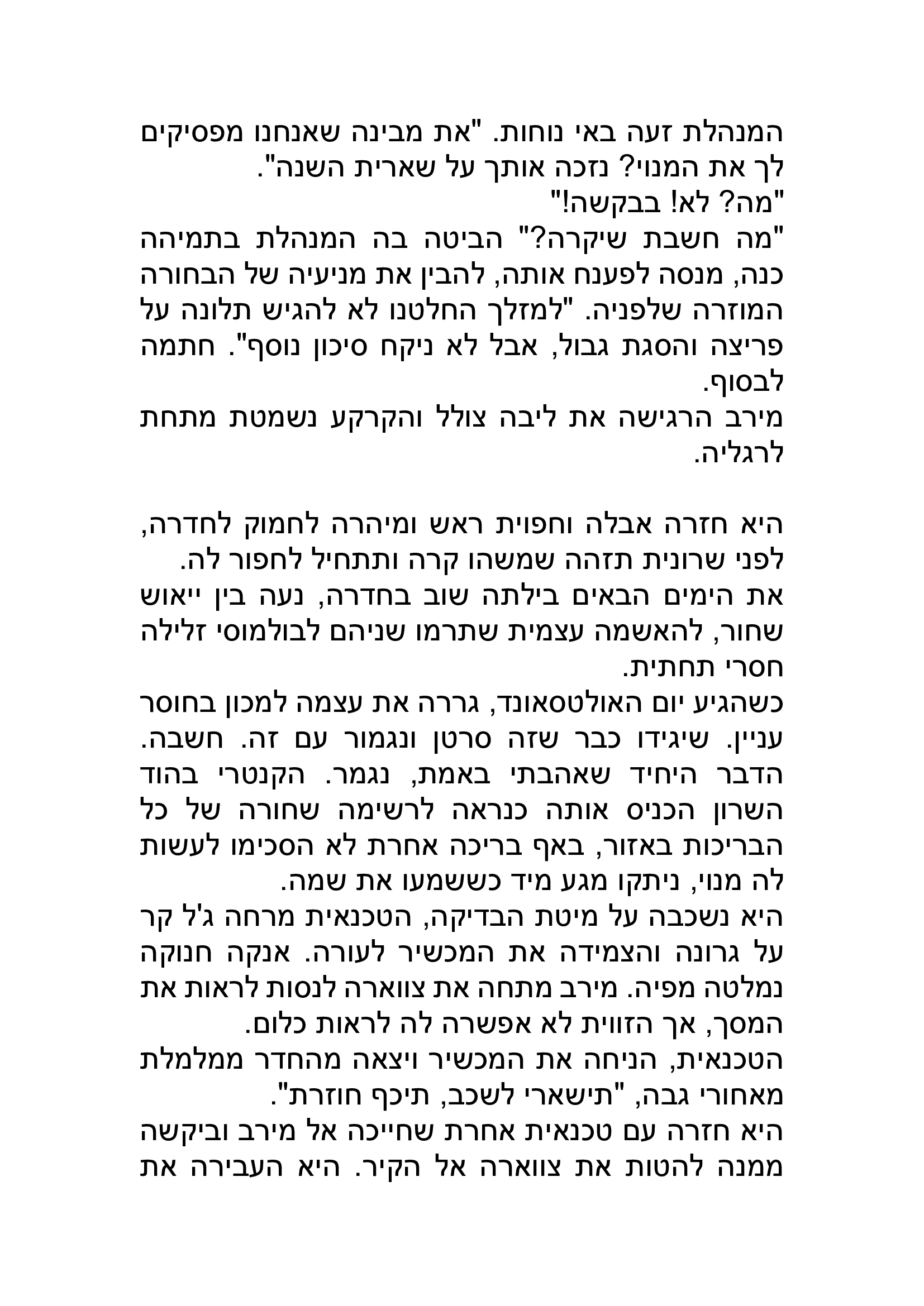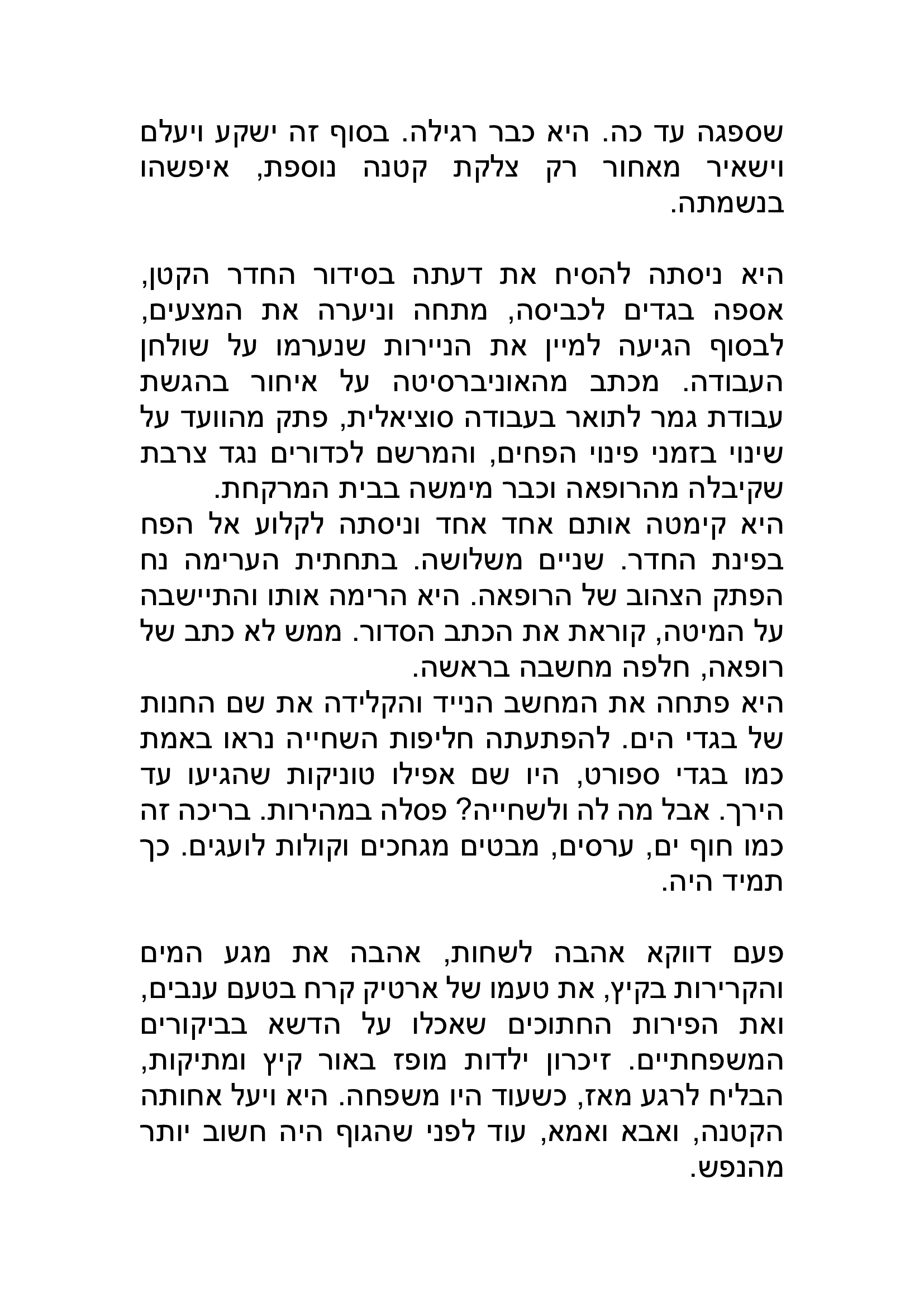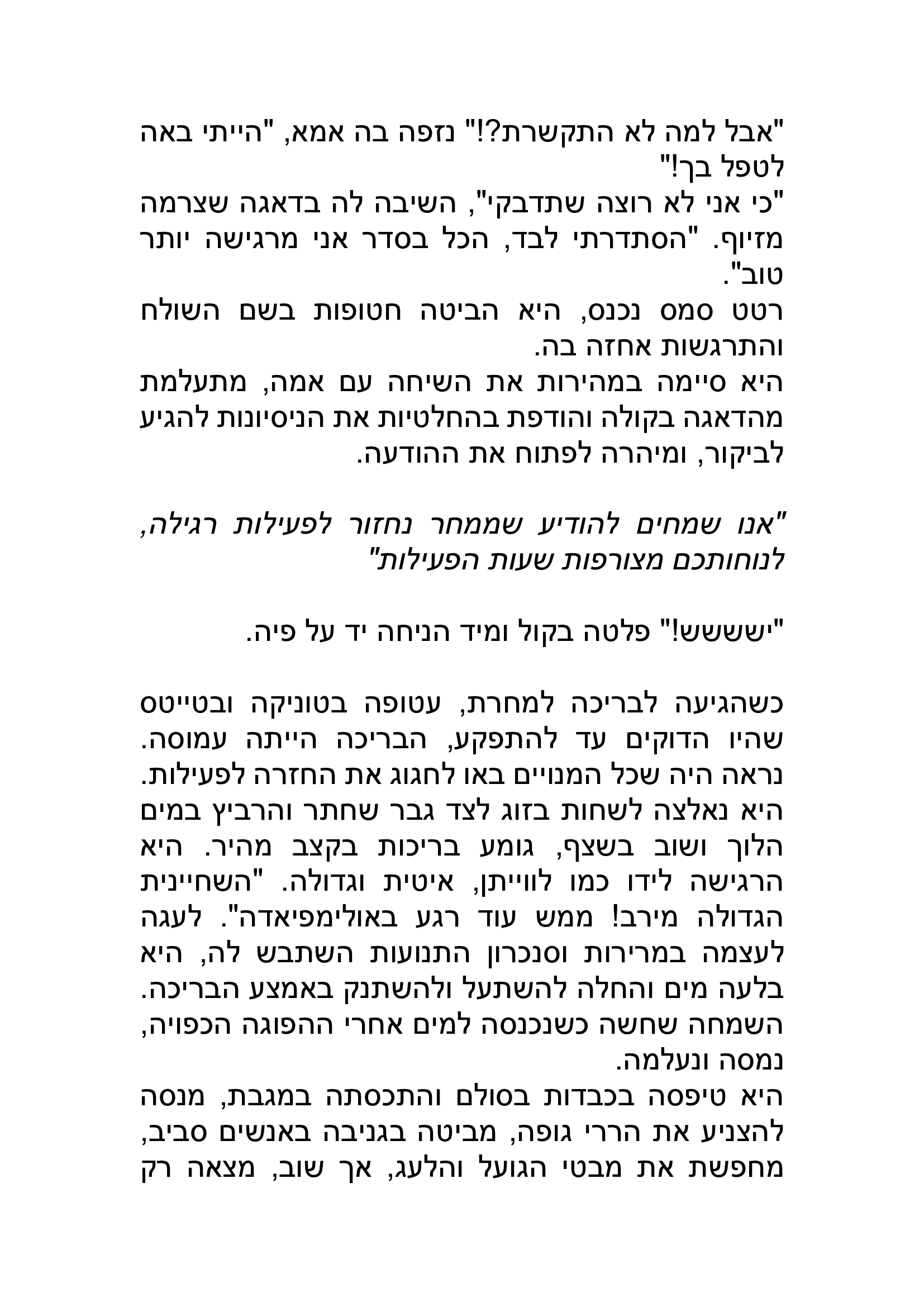 באפשרותך לכתוב כאן את תגובתך ליצירה שקראת. נא לשמור על שפה נאותה ומכובדת כדי שהנהלת האתר תאשר את פרסום תגובתך. כמו-כן ניתן לדרג את הנאתך מקריאת היצירה בין 1-5 כוכבים.