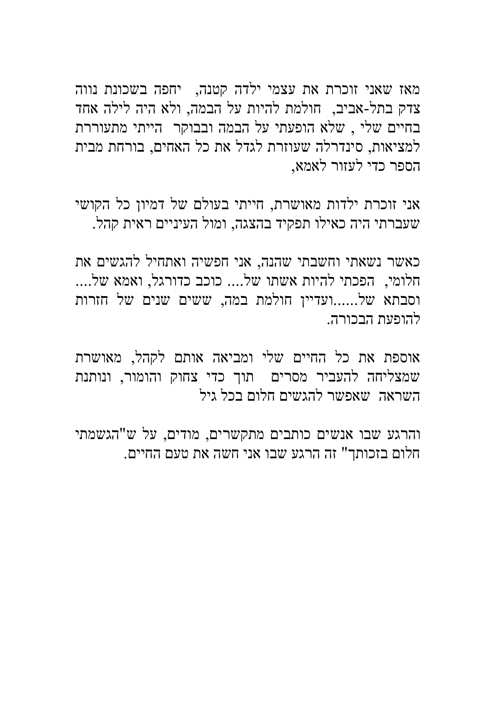 אשה מדהימה וסיפור אישי מאלף. הופעת חובה לכל אחד. מומלצת בחום.