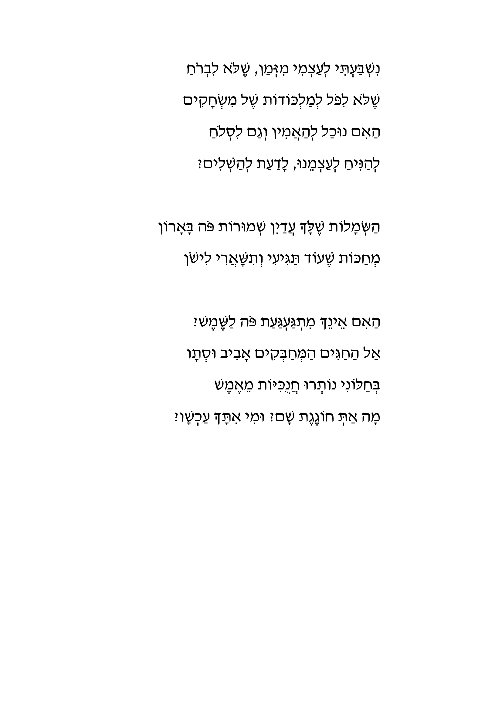 באפשרותך לכתוב כאן את תגובתך ליצירה שקראת. נא לשמור על שפה נאותה ומכובדת כדי שהנהלת האתר תאשר את פרסום תגובתך. כמו-כן ניתן לדרג את הנאתך מקריאת היצירה בין 1-5 כוכבים.